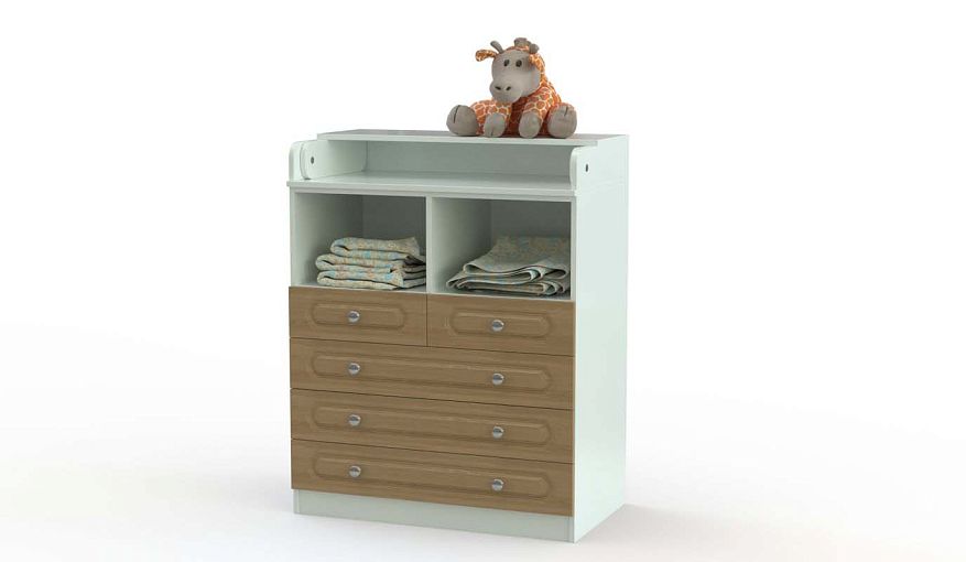 Комод пеленальный Закат 5 BMS с классической фрезеровкой на фасаде прост в уходе и хорошо смотрится в интерьерах разного типа. Благодаря откидному пеленальному столику модель удобна для переодевания малыша, при этом не занимая много места в сложенном виде. Для хранения средств гигиены и детских вещей комод оборудован разделенной перегородкой нишей, двумя малыми и тремя большими выдвижными ящиками. Купить комод пеленальный Закат 5 BMS с выбором цвета и размеров вы сможете в нашем интернет-магазине.