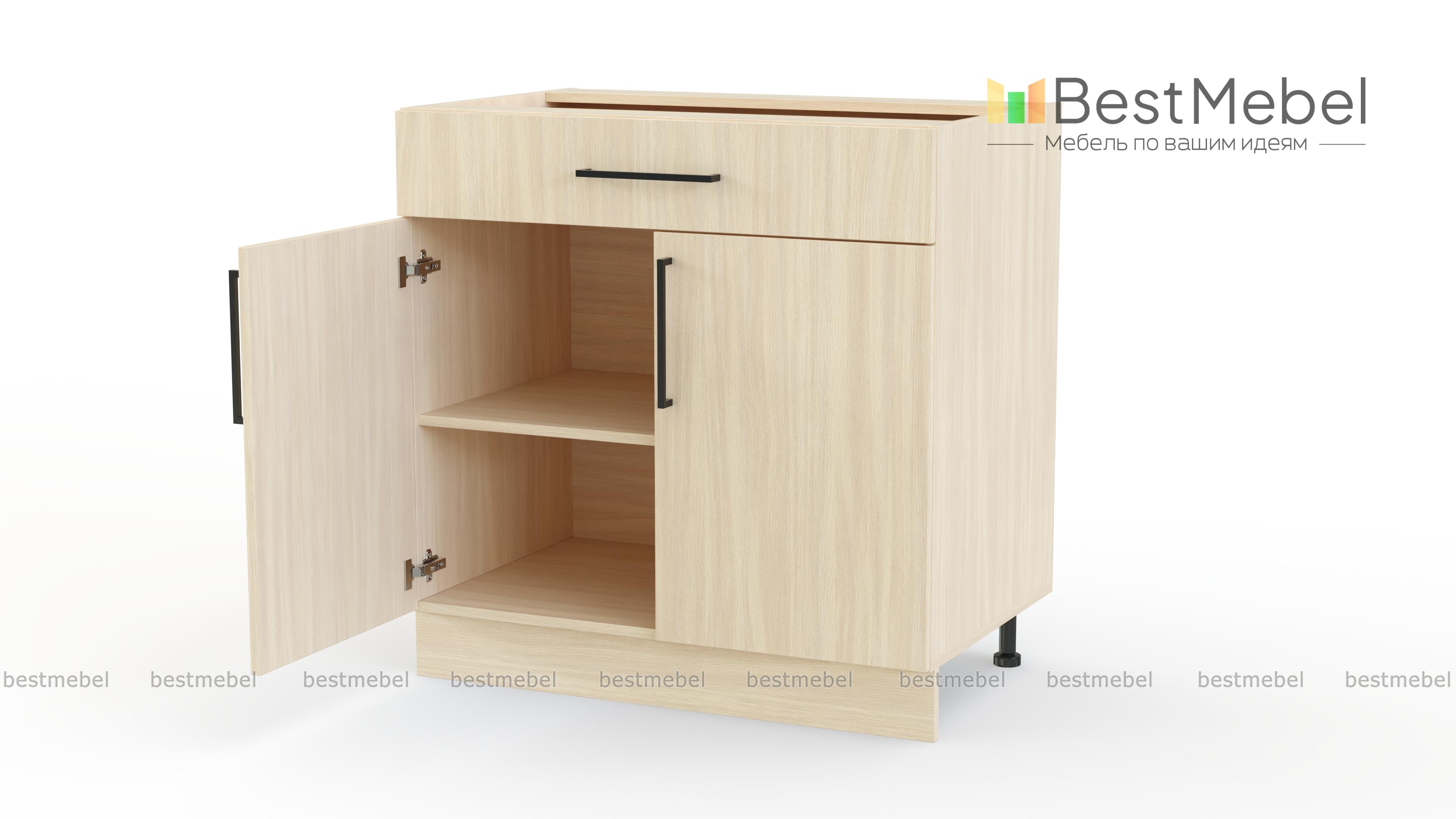 Шкаф нижний с ящиком Лайт BMS поможет разместить под рукой столовые приборы и кухонные мелочи, а для посуды и продуктов предусмотрено распашное отделение с полкой. Выполненный в нейтральном оттенке из прочной ламинированной плиты, шкаф надежен в эксплуатации и легко вписывается в современный интерьер. На фасады выдвижного ящика и двух дверей установлены стильные накладные скобы. Купить шкаф нижний с ящиком Лайт BMS вы сможете в нашем интернет-магазине с учетом необходимых размеров.