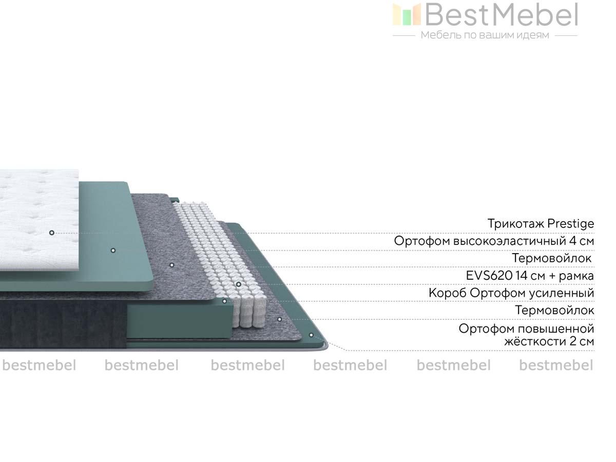 Матрас Prestige Soft Steel наполнен высокоэластичной пеной и имеет мягкую спальную поверхность. Блок с независимыми спиралями EVS620 поддержит позвоночник, а благодаря слою из Ортофом толщиной 4 см матрас примет форму вашего тела. Наполнители изолированы от металлических пружин плотным термовойлоком, для защиты боковин использован усиленный короб. Чехол сшит из трикотажа Prestige и простеган на объемном волокне с пеной, для бурлета выбран микровелюр оттенка Steel. Купить матрас Prestige Soft Steel с выбором размера вы сможете в нашем интернет-магазине.