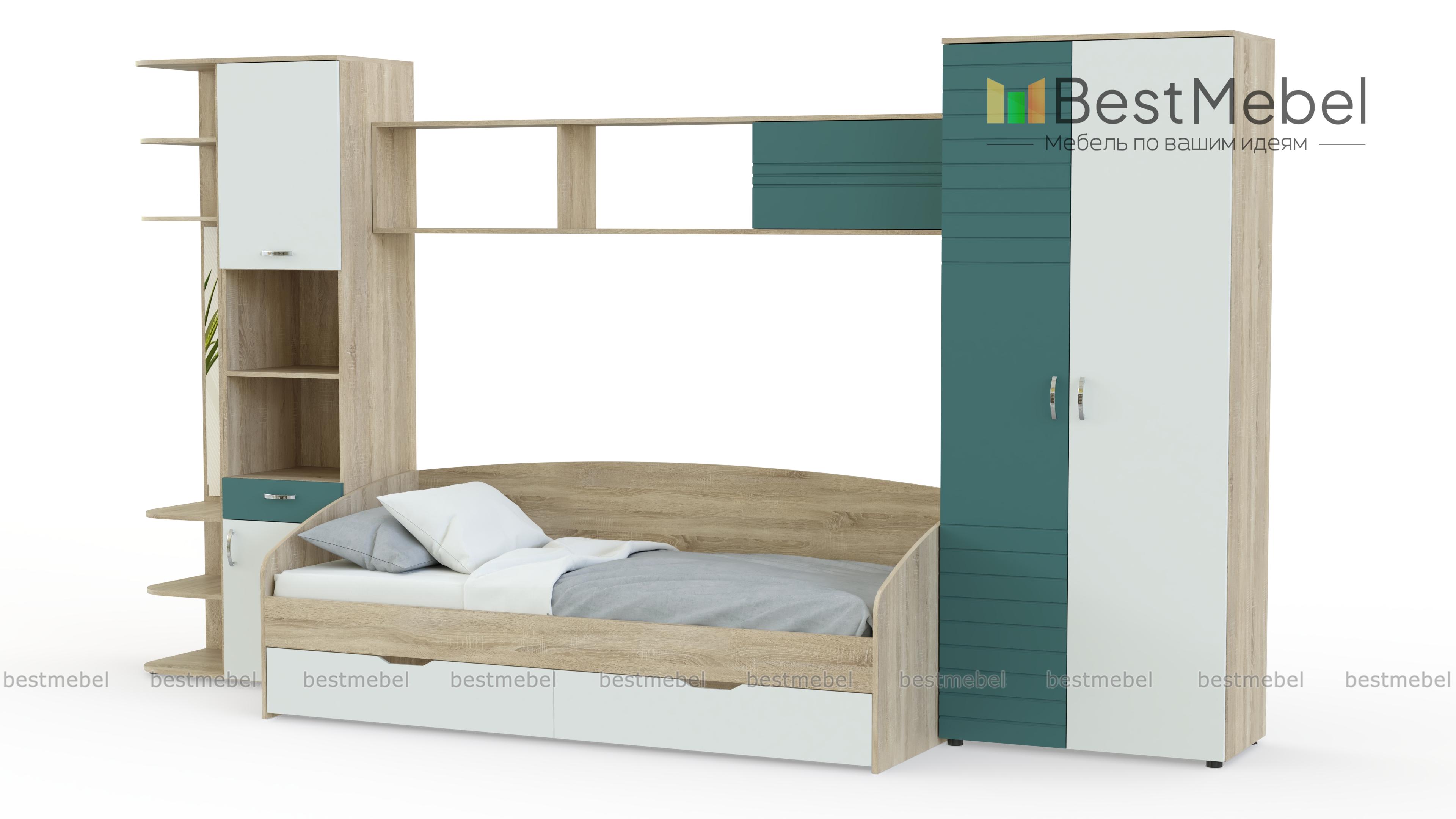 Детская мебель Манхэттен BMS будет отличным решением для организации пространства подростковой комнаты. Мебель в нейтральных древесных тонах с контрастными однотонными вставками создаст спокойную, комфортную атмосферу, а разнообразие отделений позволит компактно разместить все необходимое, от одежды до школьных и спортивных принадлежностей. В комплект входят двухдверный шкаф, просторная софа с бельевыми ящиками, комбинированный шкаф и практичный торцевой стеллаж с открытой вешалкой и зеркалом. Купить детскую мебель Манхэттен BMS вы всегда сможете в нашем интернет-магазине.
