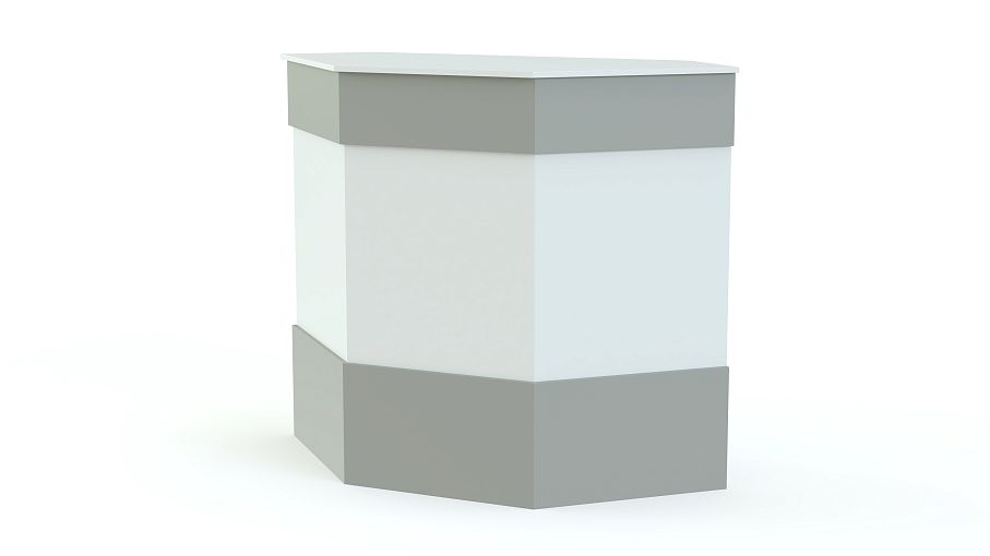 Ресепшен Рейна № 3 BMS – это угловой модуль в форме трапеции, который легко комбинируется с прямыми секциями серии для создания комфортного рабочего места. Стойка оборудована двумя просторными столешницами – внешней, для посетителей, и внутренней, для администратора. Выполненная в универсальном белом цвете, модель декорирована по фасаду горизонтальными планками контрастного серого цвета. Купить ресепшен Рейна № 3 BMS вы сможете в нашем интернет-магазине по доступной цене.
