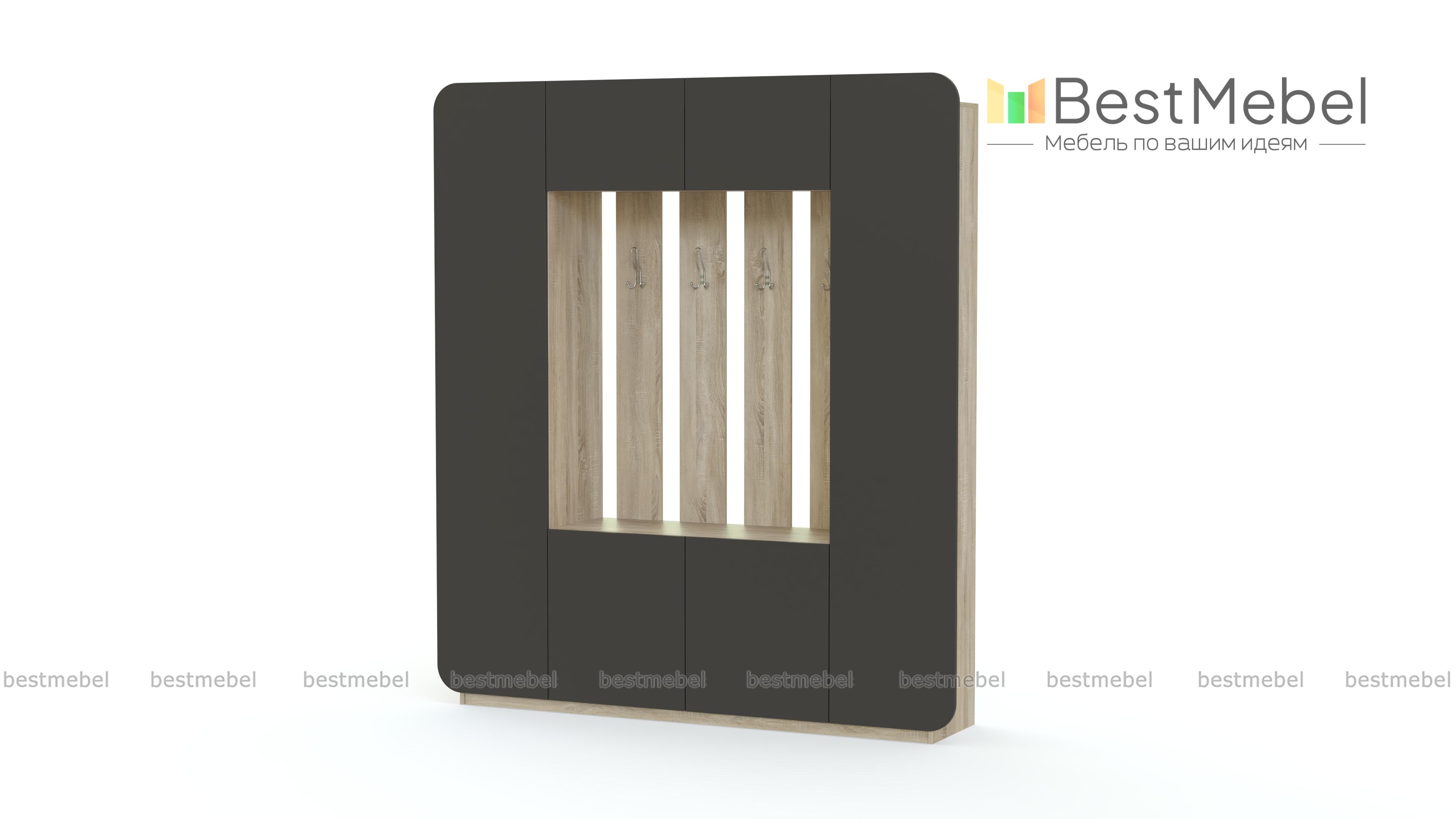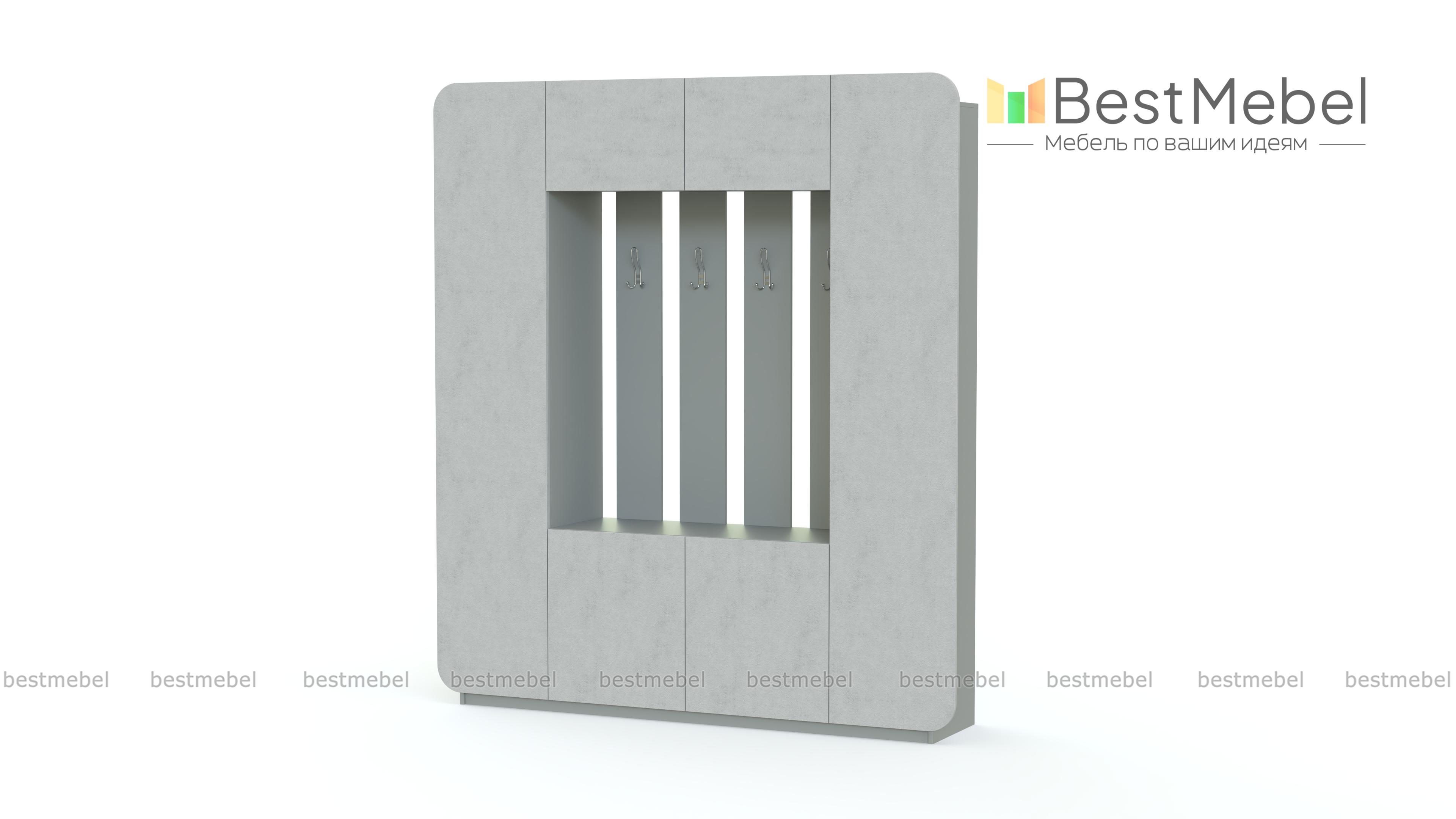 Прихожая МБ 3.1 BMS – эффектная современная композиция для просторного помещения. Поклонники минимализма оценят строгую геометрию формы, скругленные углы и матовую сплошную поверхность фасадов. Модель представляет собой комбинацию из двух распашных пеналов, тумбы с полками и антресоли с нишей в центральной части, оборудованной открытой вешалкой. Продуманная конструкция и оригинальный дизайн помогут обустроить стильную и функциональную входную зону. Купить прихожую МБ 3.1 BMS приглашаем в наш интернет-магазин, подобрав цветовое решение.