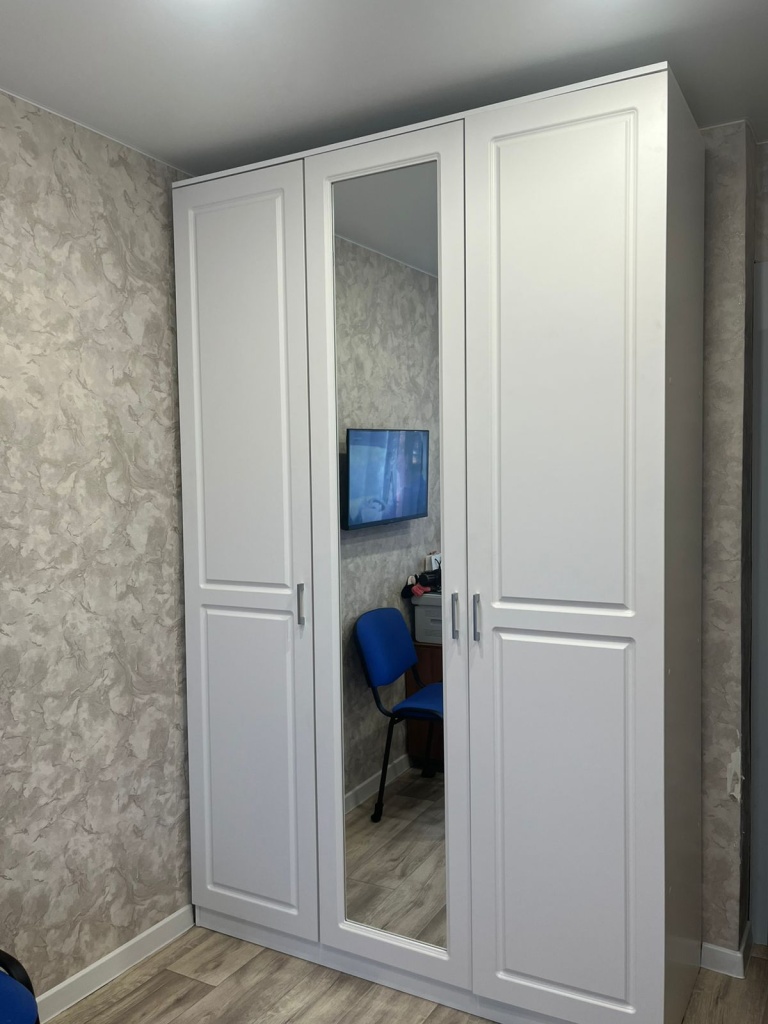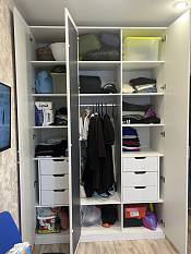 Заказ 00000204262, изделие ЭСКИЗ №00000204262 Распашной шкаф Лимбо 8 BMS (1500х2400х550) (Белье - Платье - Белье (4 ящика) (3)) Шкаф очень понравился. Выглядит легко, совсем не громоздко. Вписался в интерьер комнаты. Вместительный. Внутренности были изготовлены по моему образцу. Сроки поставки были согласованы. Привезли полный комплект, без сколов, вмятин и т.д. Собрали без проблем. Покупкой очень довольна