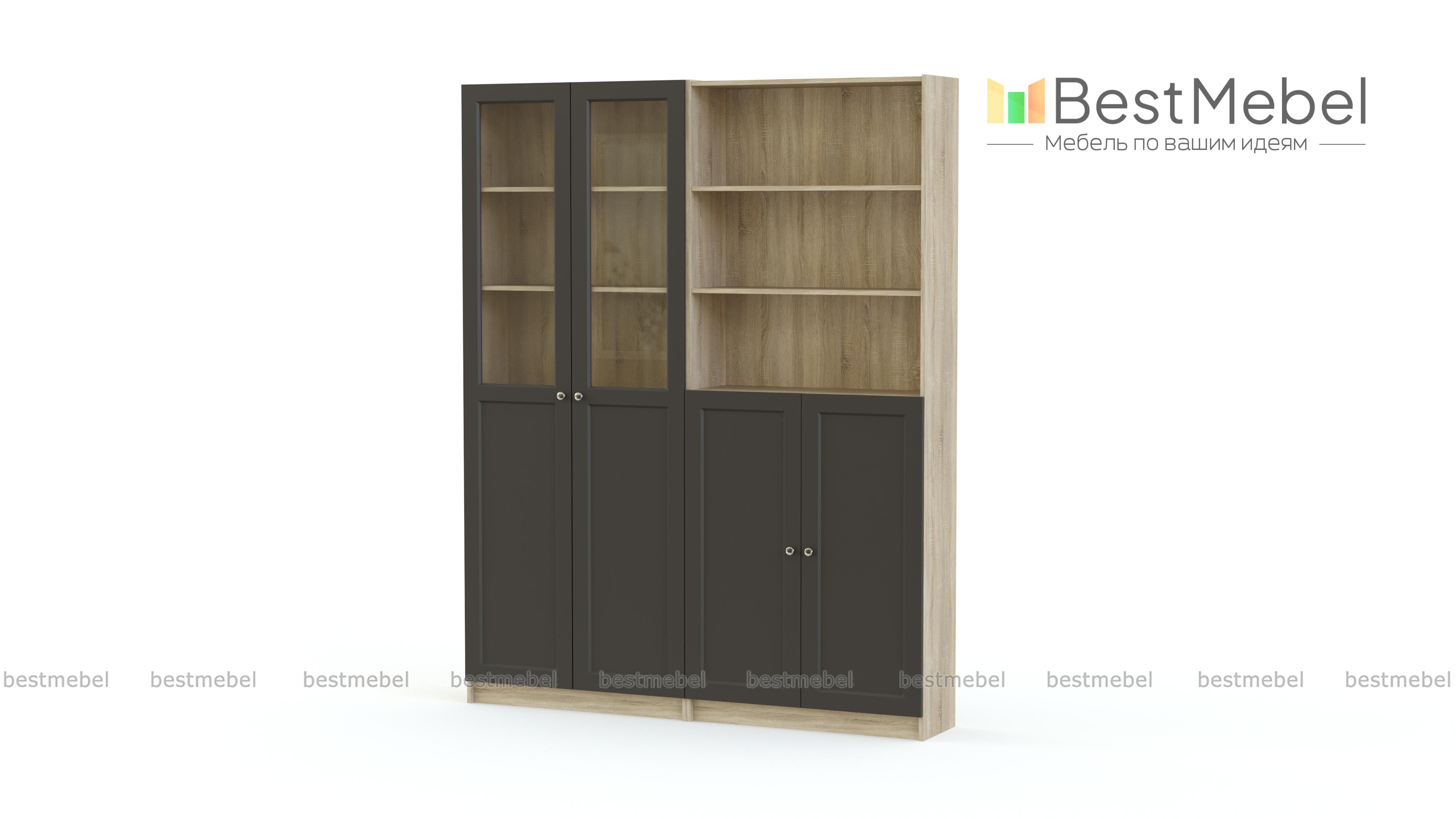 Шкаф Билли Оксберг Billy Oxberg 27 состоит из двух комбнированных распашных шкафов – с застекленными и открытыми полками. За глухими дверцами в нижней части будут скрыты разнообразные бытовые вещи, бумаги и книги, и комната примет аккуратный вид. Композиция классического дизайна в популярном светлом оттенке универсальна и дает много возможностей для экспериментов с цветом. Купить шкаф Билли Оксберг Billy Oxberg 27 по доступной цене вы сможете в нашем интернет-магазине. Выбирайте мебель в стиле IKEA (ИКЕА) от производителя BestMebelShop!