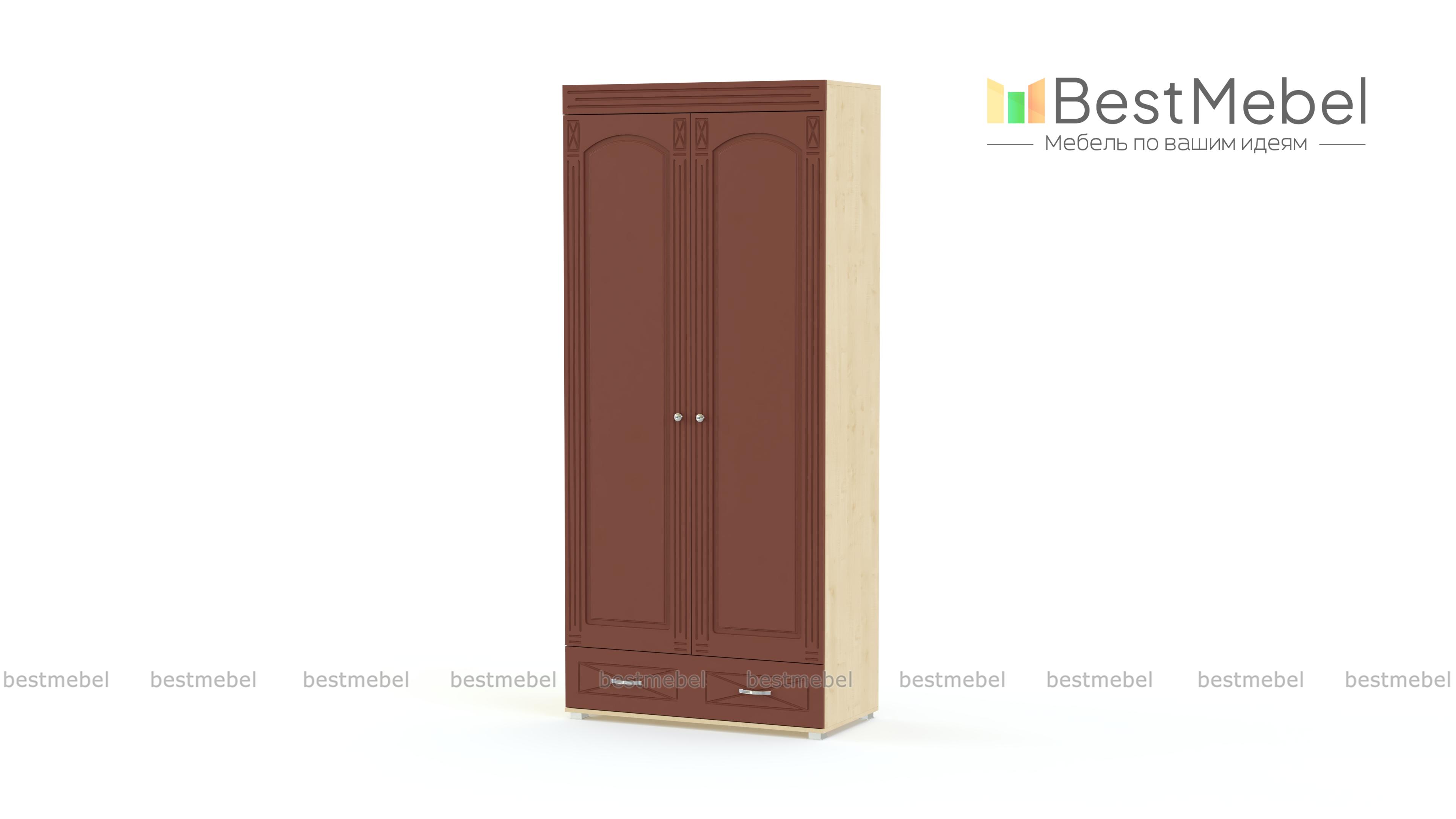 Шкаф платяной Элизабет ЭМ-6 BMS выполнен в классическом стиле и отличается характерным для этого направления декором. Фасады двухдверной модели украшены фрезеровкой, изящными ручками под серебро и станут настоящим украшением интерьера спальни. Внутреннее наполнение – антресольная полка, штанга для одежды и отделение с полками. Вместительный выдвижной ящик в основании удобен для мелких вещей. Устойчивость обеспечат регулируемые опоры, а оптимальную расцветку в необходимом оттенке вы сможете подобрать самостоятельно. Купить шкаф платяной Элизабет ЭМ-6 BMS по отличной цене приглашаем в наш интернет-магазин.
