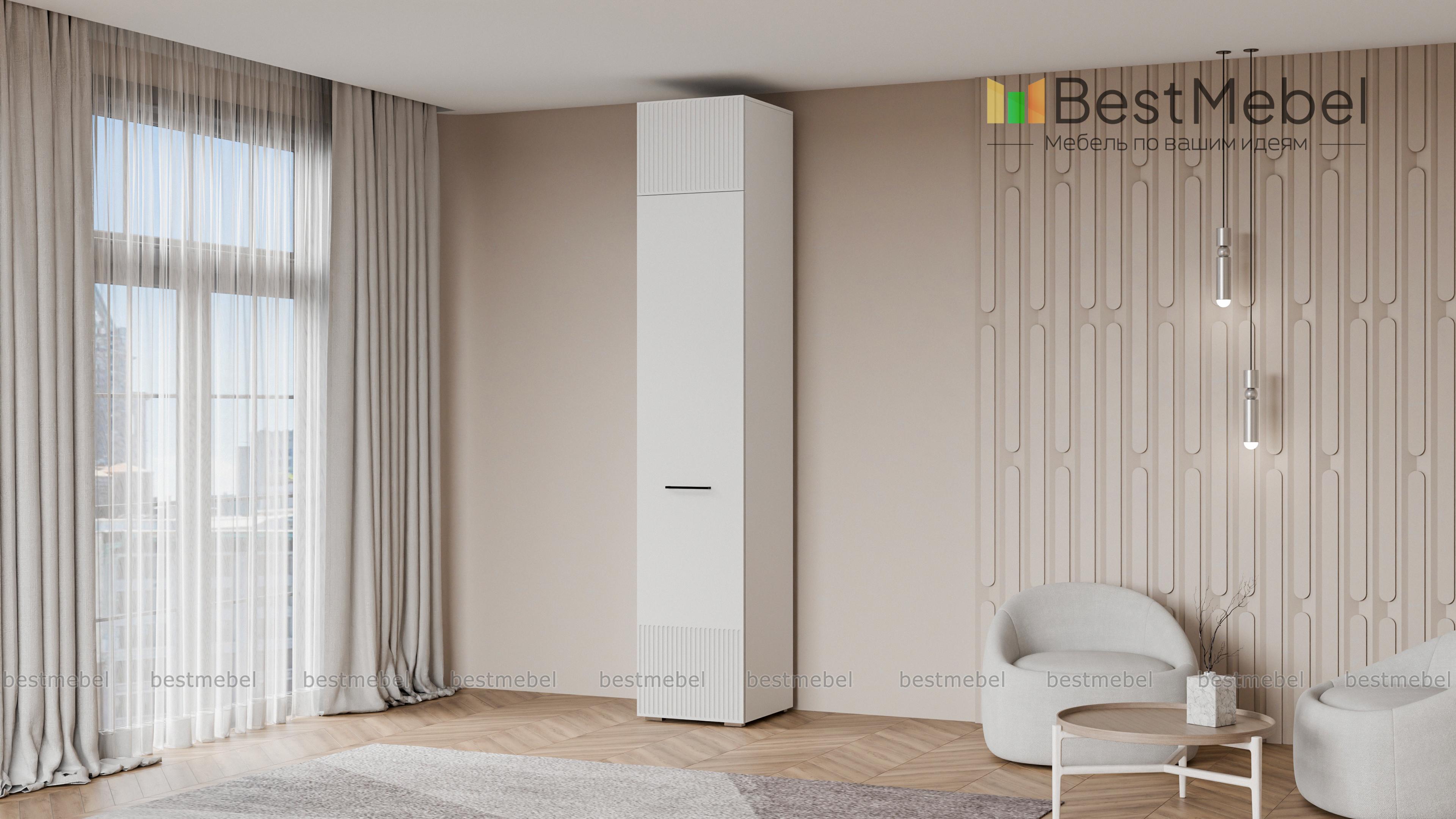 Шкаф распашной Декарт 7 BMS с одной дверцей и антресолью подходит для самых разных помещений. Высокий узкий шкаф с простым и выразительным благодаря фрезеровке дизайном оснащен необходимой для размещения вешалок с одеждой перекладиной и полочкой. Дополнительный отсек сверху значительно увеличивает пространство для хранения. Купить шкаф распашной Декарт 7 BMS вы сможете недорого в нашем интернет-магазине, подобрав подходящие именно вам цвета и размеры.