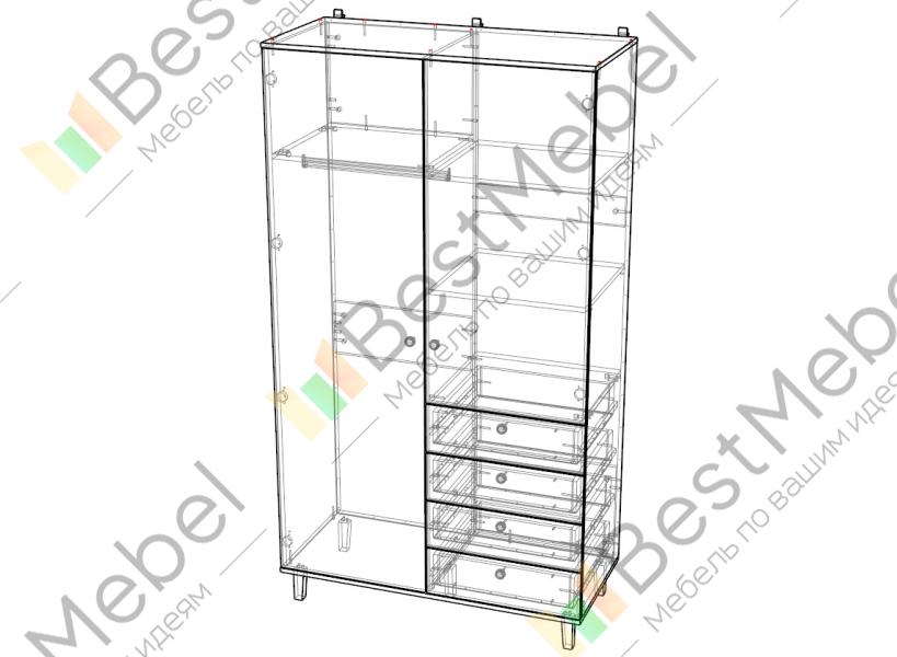 Шкаф распашной Хобарт 15 BMS можно разместить в небольшой спальне или детской комнате. Двухцветный фасад украшен фрезеровкой в стиле сканди, на дверцы и ящики установлены удобные круглые ручки. Оборудованный скошенными ножками, шкаф имеет комбинированную конструкцию с двумя распашными дверцами и четырьмя выдвижными ящиками для хранения мелкого трикотажа или игрушек. Купить шкаф распашной Хобарт 15 BMS приглашаем в наш интернет-магазин с выбором фурнитуры и цвета по каталогу.