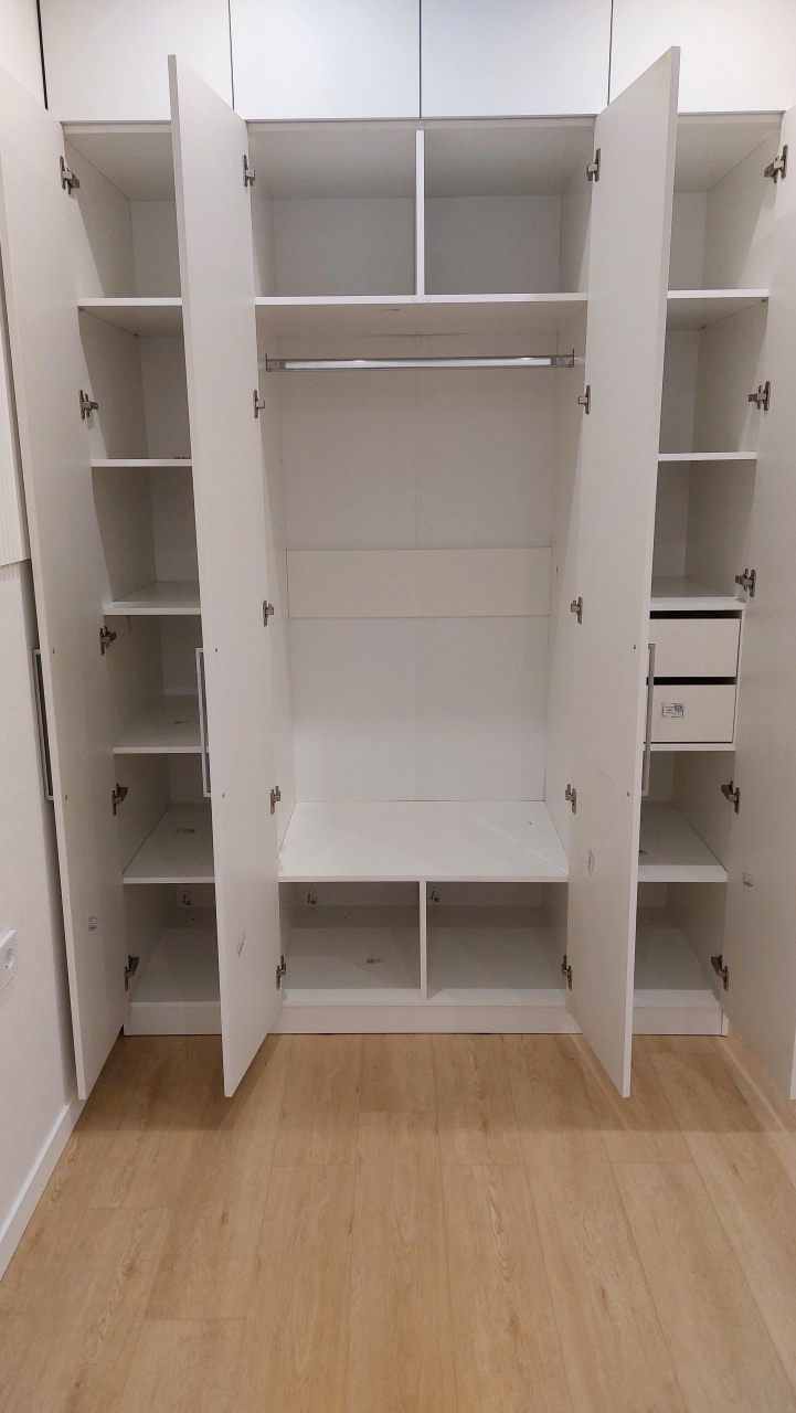 Заказывала шкаф в интернет магазине производителя, понравилось, что здесь гораздо больше вариант улучшения шкафа под себя, чем в этом же магазине на озон. Заказала по индивидуальным размерам: шкаф стандартный, а антресль высотой 35 см. Фасады выбрала из мдф, выбрала нужные ручки, петли с доводчиками, два выдвижных ящика, для антресоли - систему открывания пуш ту опн, можно было даже толщину кромки добавить! Перезвонили быстро, уточнили все нюансы, о которых можно было забыть, а они важны. Приехал шкаф за 6 дней, упаковка почти вся была целая, мягкий гофркартон в некоторых местах бвл поврежден, но сам шкаф цел, углы деталей были защищены дополнительно пластиковыми насадками. Шкаф собрали быстро мои опытные сборщики, сказали что шкаф достойного качества, все места для креплений были сделаны, крепежей хватило. Из минусов на торцевой части с одной стороны ошибочно сделали дырки для крепежа, получается они были с двух сторон, как будто перепутали, это неприлично, закрыла заглушками, и на этой же стенке очень сильно видны следы клея вместе соединения с кромкой, клей отмывается, но первое впечатление было подпорчено. Вцелом покупкой довольна и могу рекомендовать данного производителя. Любуюсь своим шкафом!