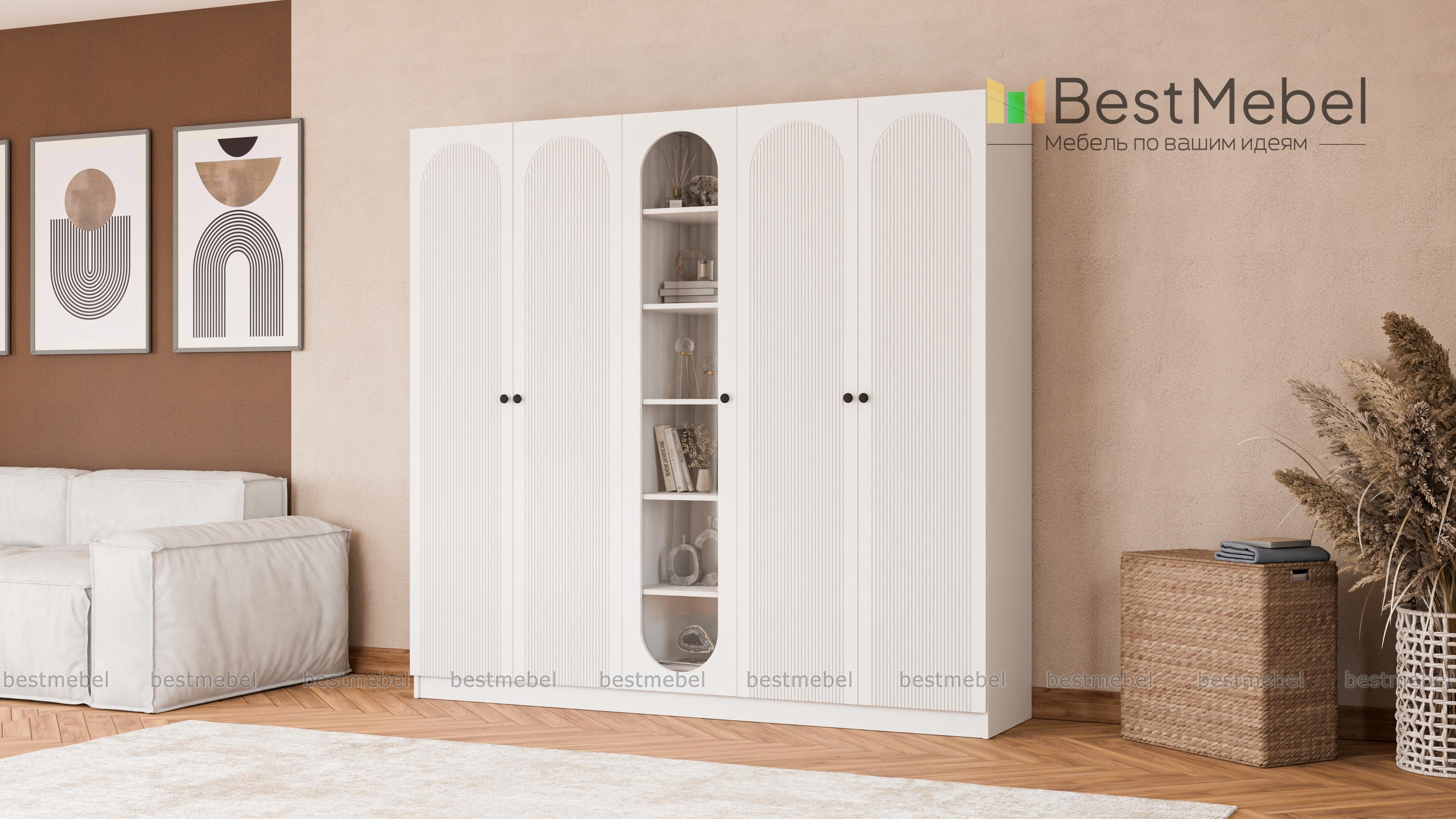 Шкаф распашной Рене 14 BMS с фактурными фасадами и большой овальной витриной в центре дополнит спальни и гостиные. Благодаря распашным створкам одежда хорошо просматривается, а на полках витрины будут на виду любимые книги, предметы коллекции и просто приятные мелочи. Материалы изготовления — ламинированная ДСП под древесный массив и МДФ. Купить шкаф распашной Рене 14 BMS можно на сайте нашего интернет-магазина в удобном размере и оттенках из каталога.
