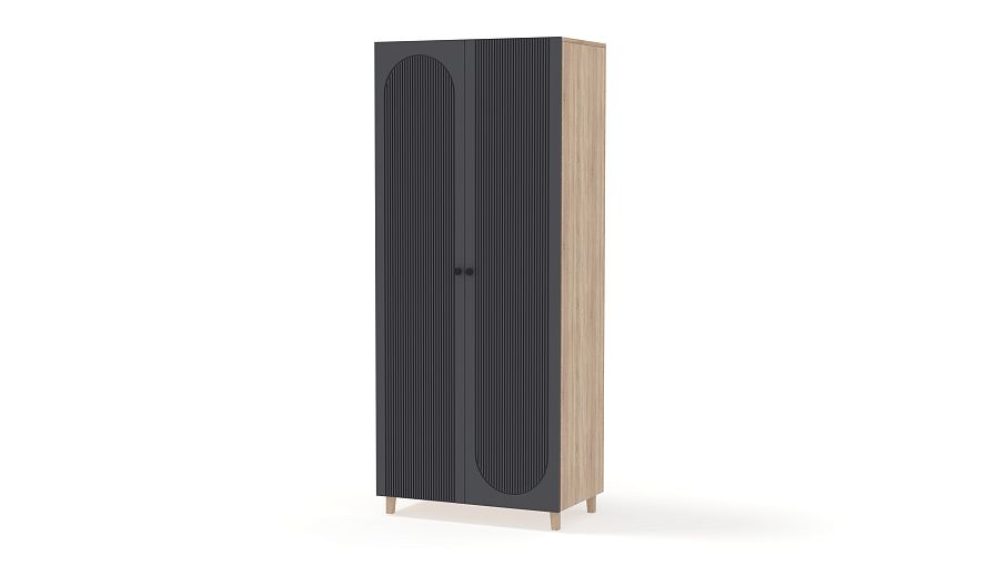 Шкаф распашной Рене 17 BMS в стильном темном дизайне добавит индивидуальности интерьеру. Высокие ножки выполнены в тон корпусу с древесным рисунком, фасад украшает оригинальный рельеф. Двухдверное распашное отделение со штангой и полками оптимально подходит для хранения базового гардероба в небольших спальнях, детских и прихожих. Купить шкаф распашной Рене 17 BMS вы сможете в нашем интернет-магазине, самостоятельно подобрав размеры и гармонирующую с интерьером цветовую гамму.