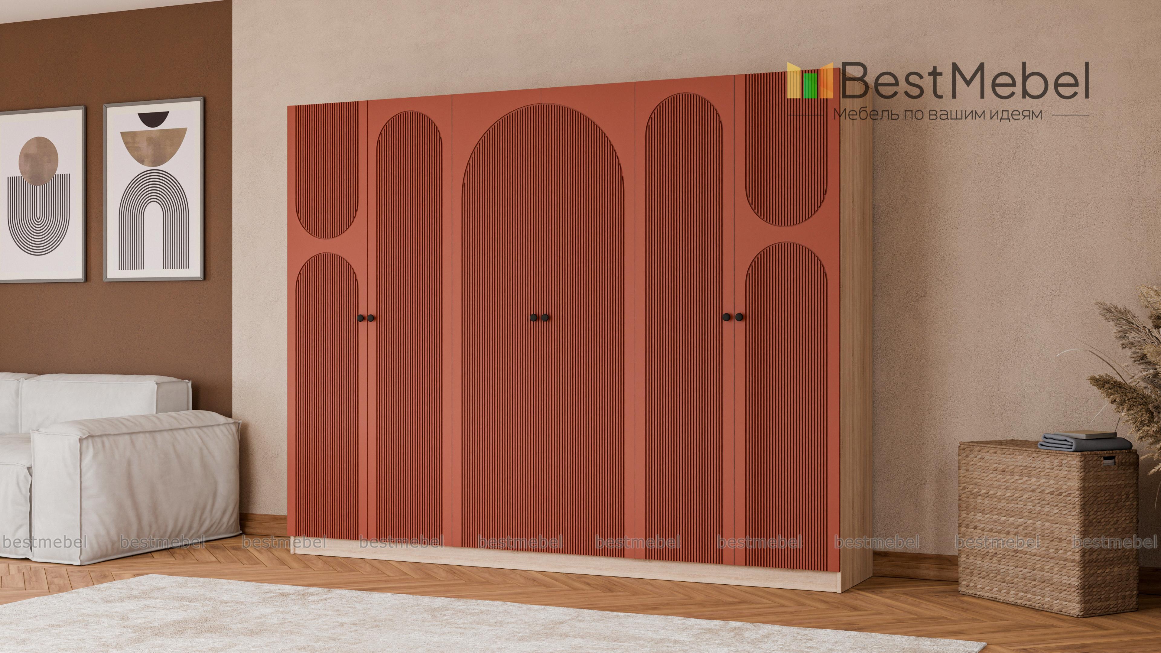 Шкаф распашной Рене 34 BMS отличается вместительностью и выразительным современным дизайном. На темном фасаде эффектно смотрится фрезеровка, корпус из ламинированной ДСП выполнен в древесных тонах. Шестидверная модель укомплектована необходимыми для хранения одежды на вешалках, трикотажа и постельных принадлежностей мебельными штангами и полками. Купить шкаф распашной Рене 34 BMS вы сможете на сайте нашего интернет-магазина в удобном размере и оттенке из каталога.
