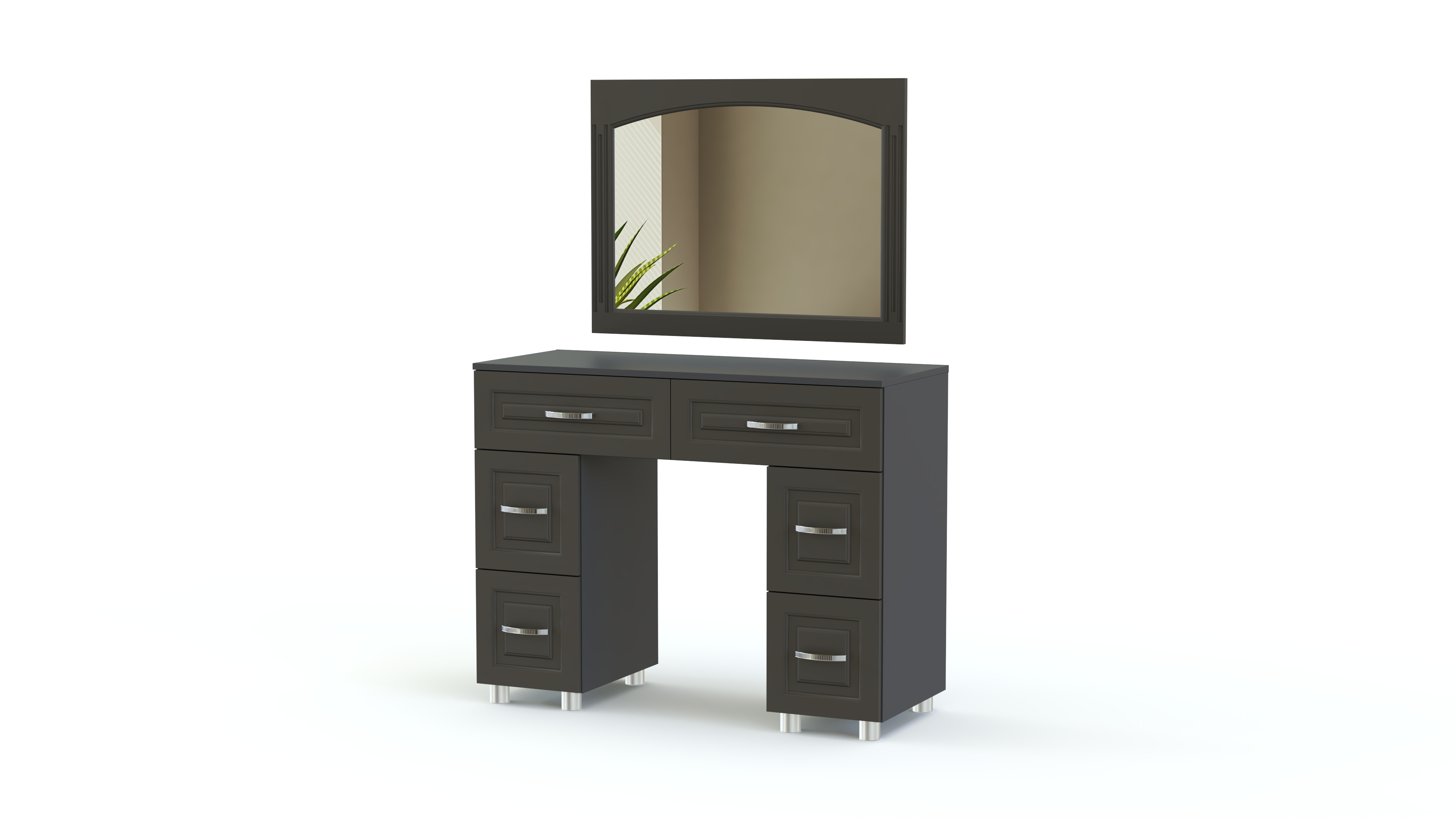 Элегантный классический комплект для спальни Элизабет Композиция 3 BMS, выполненный в светлых тонах, выглядит особенно легко и атмосферно и станет в интерьере вашего дома стильным акцентом. В гарнитур входят платяной шкаф с изящными полукруглыми зеркалами, туалетный столик с навесным широким зеркалом, удобная двуспальная кровать и две прикроватные тумбы. Фасады мебели декорированы металлическими, под позолоту, оригинальными ручками, придающими всему комплекту винтажный оттенок.