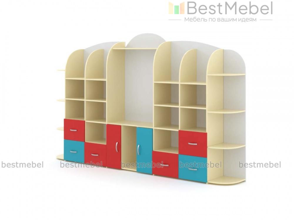 Стеллаж Астра 15 BMS станет практичным выбором для меблировки детских садов и развивающих центров. Горка с фигурной задней стенкой и просторной нишей под ТВ в центре оборудована множеством открытых полок, распашными шкафчиками и выдвижными ящиками для хранения книг, игрушек и учебных пособий, а по бокам располагаются торцевые полочки для мелочей. Яркий дизайн стеллажа обязательно понравится малышам, а надолго сохранить эстетичный вид помогут износостойкие материалы. Купить стеллаж Астра 15 BMS с выбором фурнитур и цвета по каталогу вы сможете в нашем интернет-магазине.