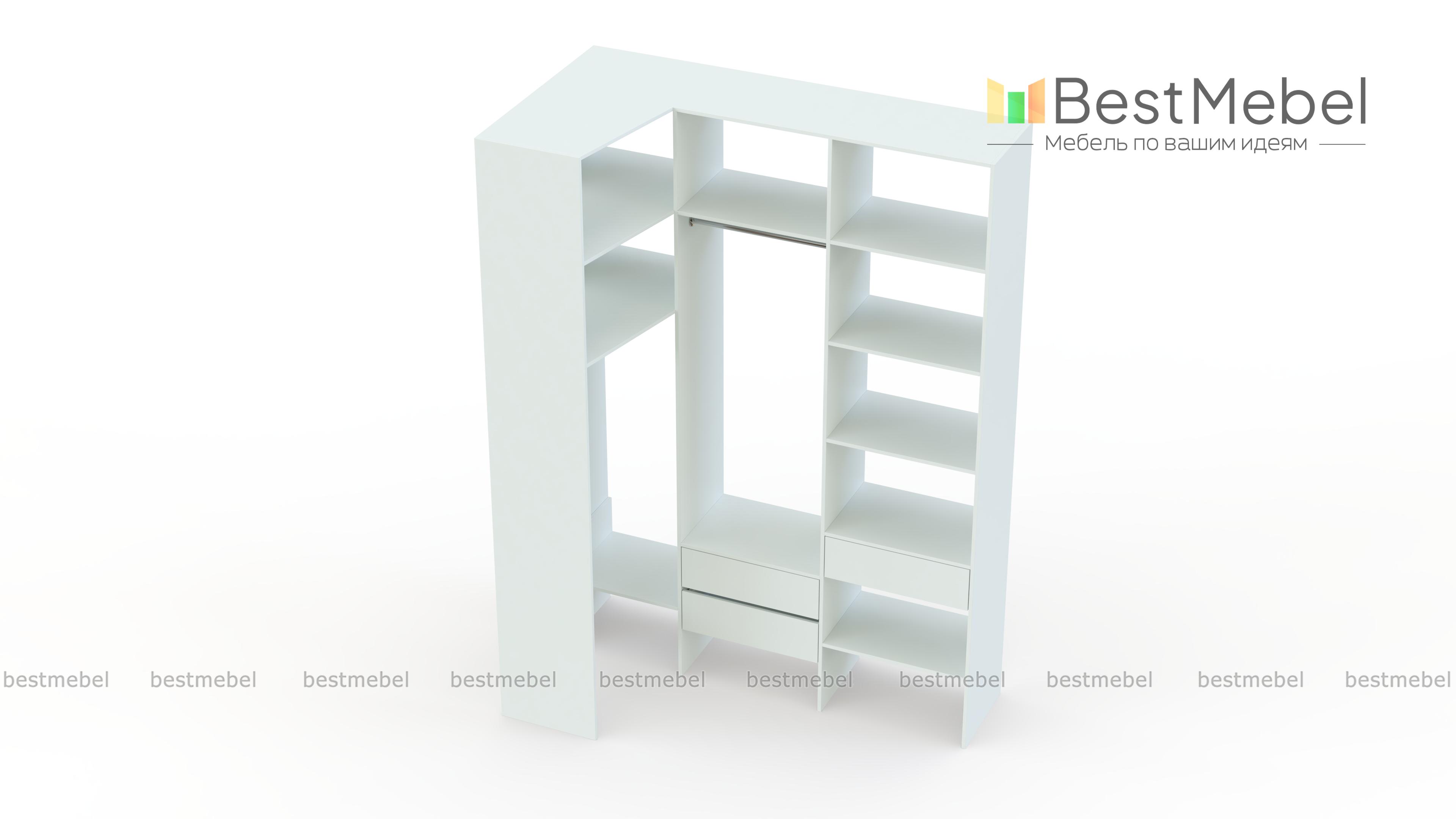 Стеллаж для одежды Мирта 23 BMS использует угловое пространство комнаты за счет Г-образной формы. Две перекладины на разных уровнях и продуманная система полок и ящиков помогают максимально удобно спланировать хранение. Гладкое покрытие корпуса и фасадов очищается без усилий, что позволяет с легкостью поддерживать эстетичный вид стеллажа. Купить стеллаж для одежды Мирта 23 BMS с учетом оптимальных размеров приглашаем недорого к нам в интернет-магазин.
