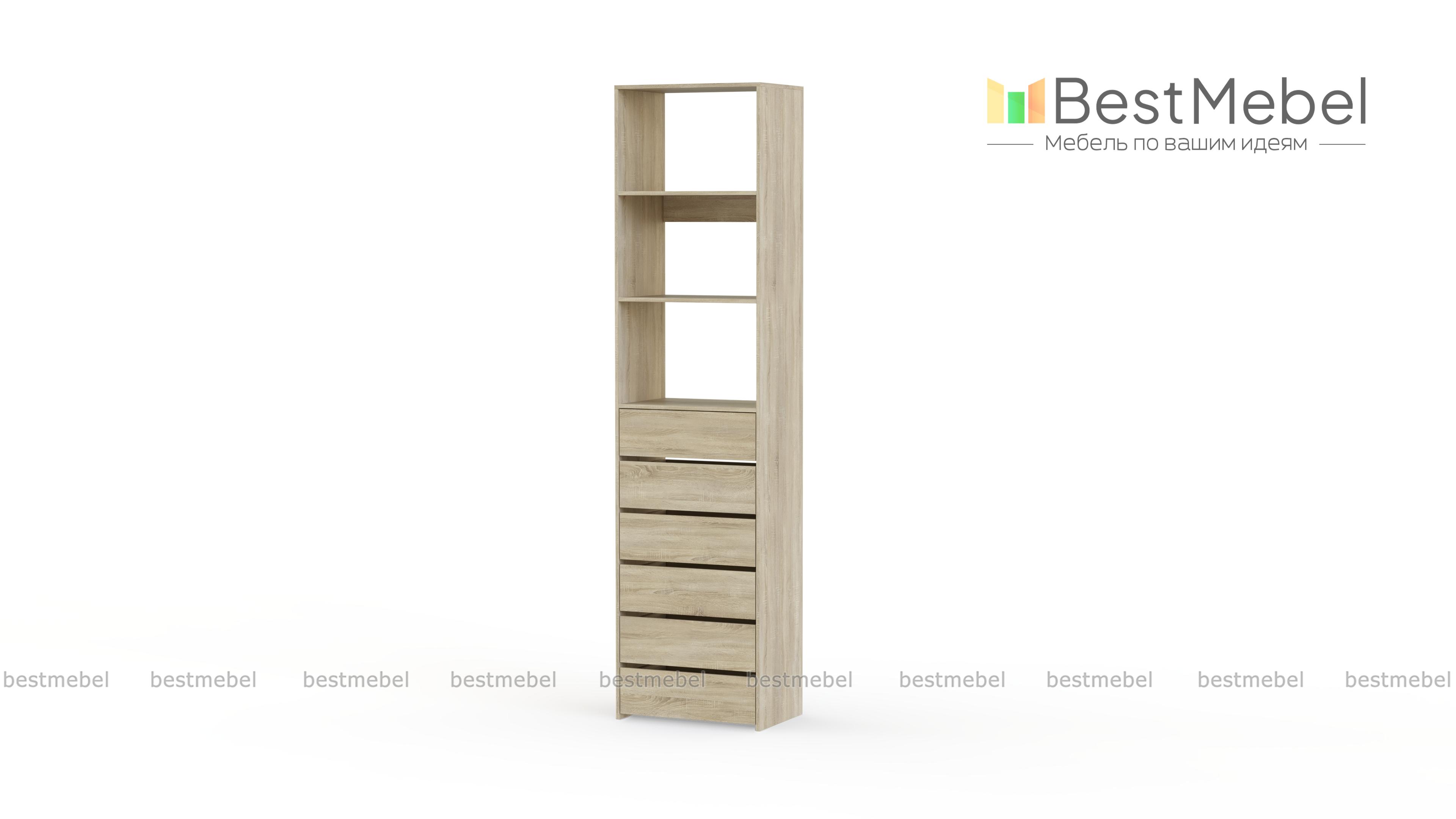Стеллаж для одежды Мирта 37 BMS поможет оборудовать место для хранения стопок с одеждой, органайзеров с мелочами и сезонных аксессуаров. Разделенный двумя полками в верхней части, стеллаж дополнен шестью выдвижными отделениями. Поверхности из ламинированной ДСП устойчивы к появлению царапин и влаге, надолго сохраняя эстетичный внешний вид. Купить стеллаж для одежды Мирта 37 BMS приглашаем в наш интернет-магазин с индивидуальным подбором цвета и размеров.