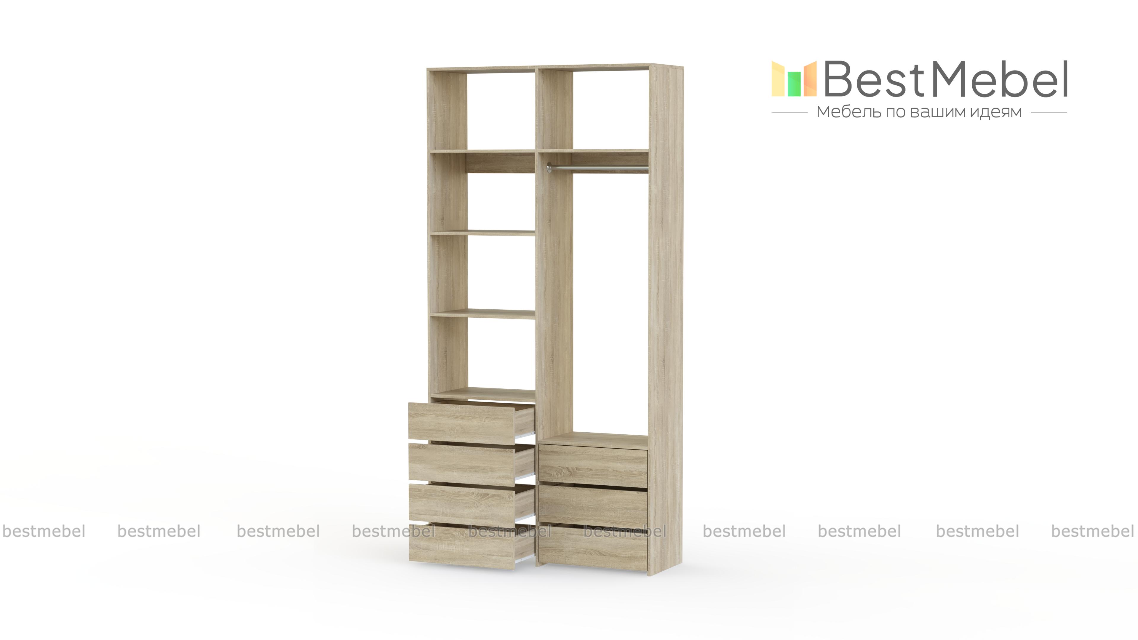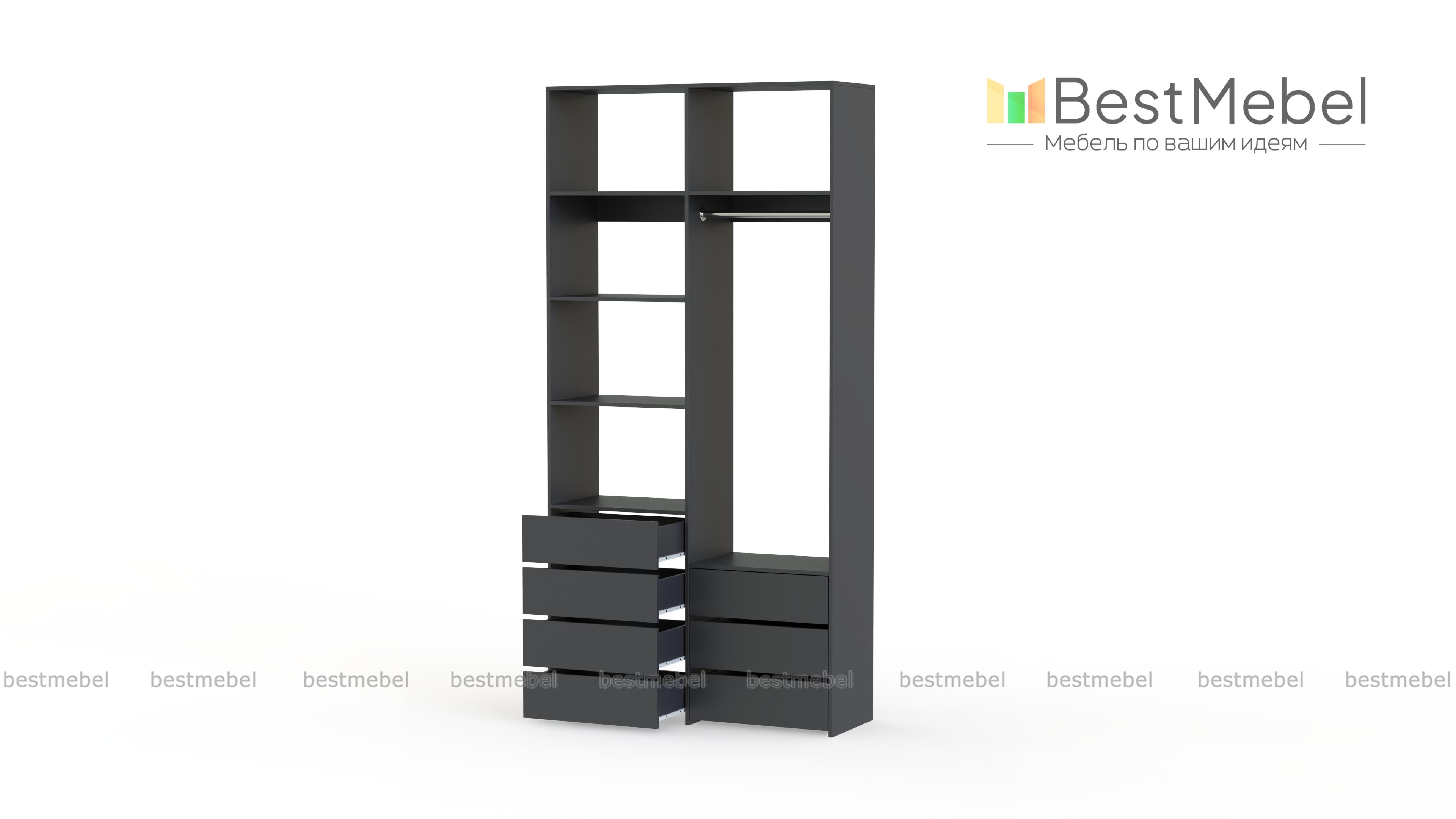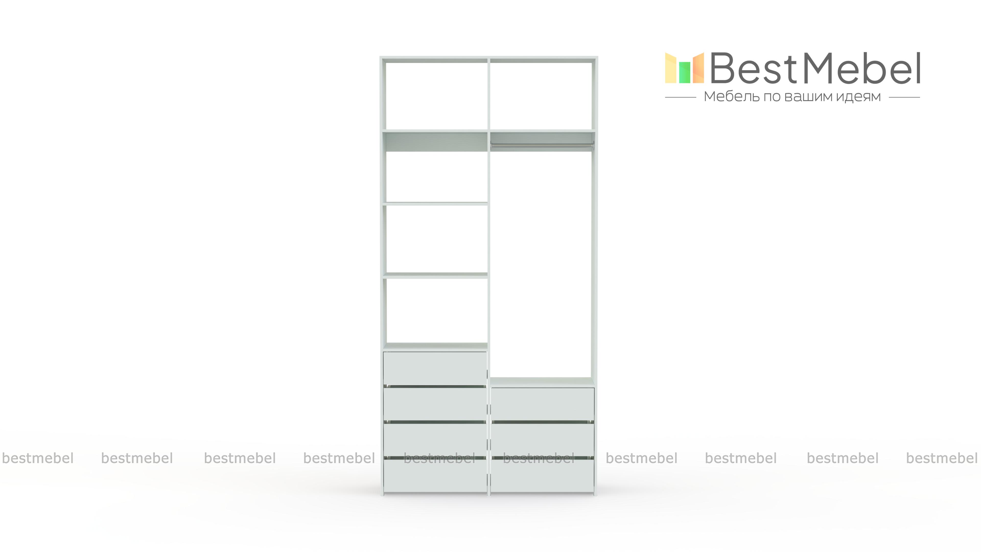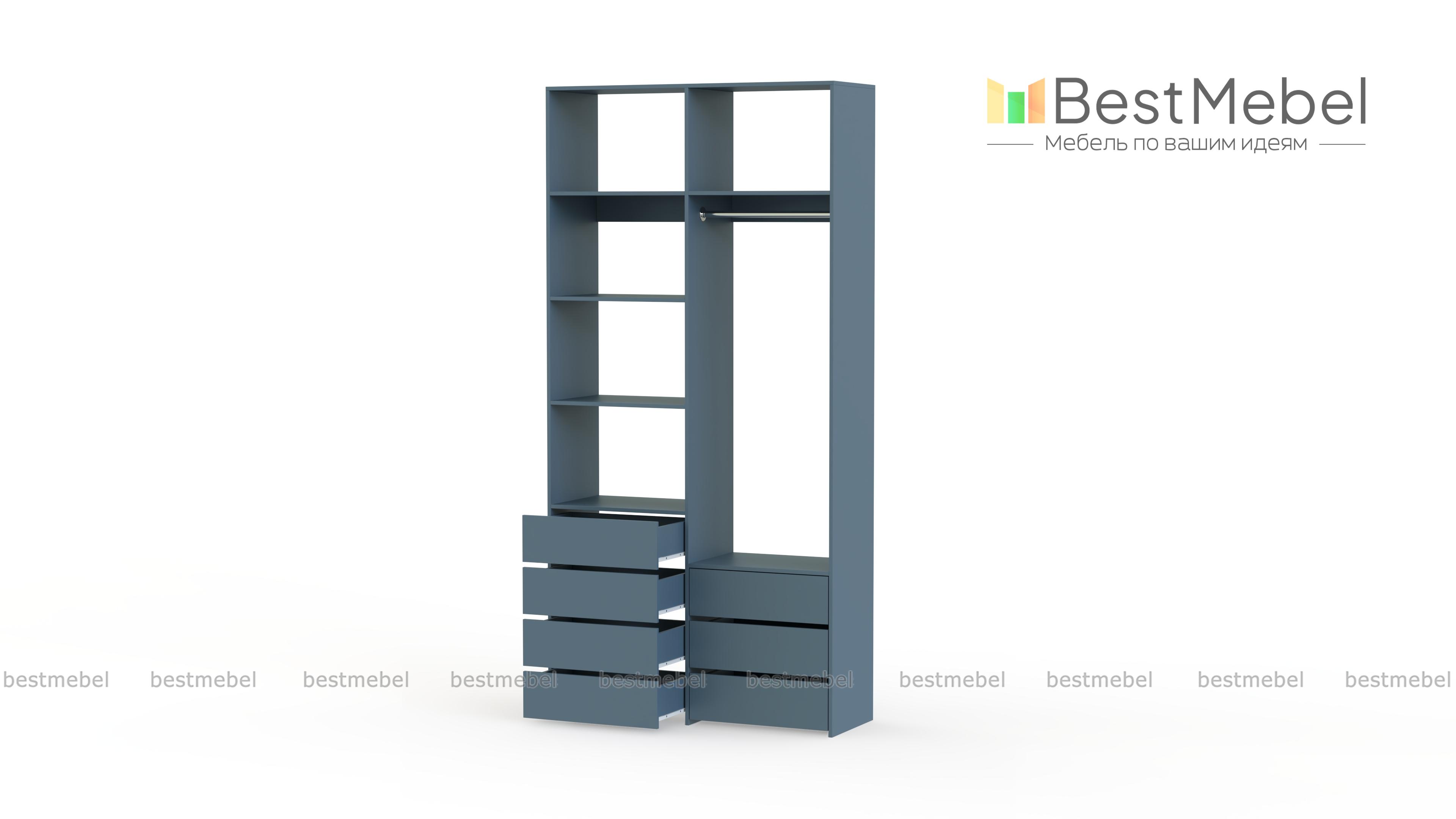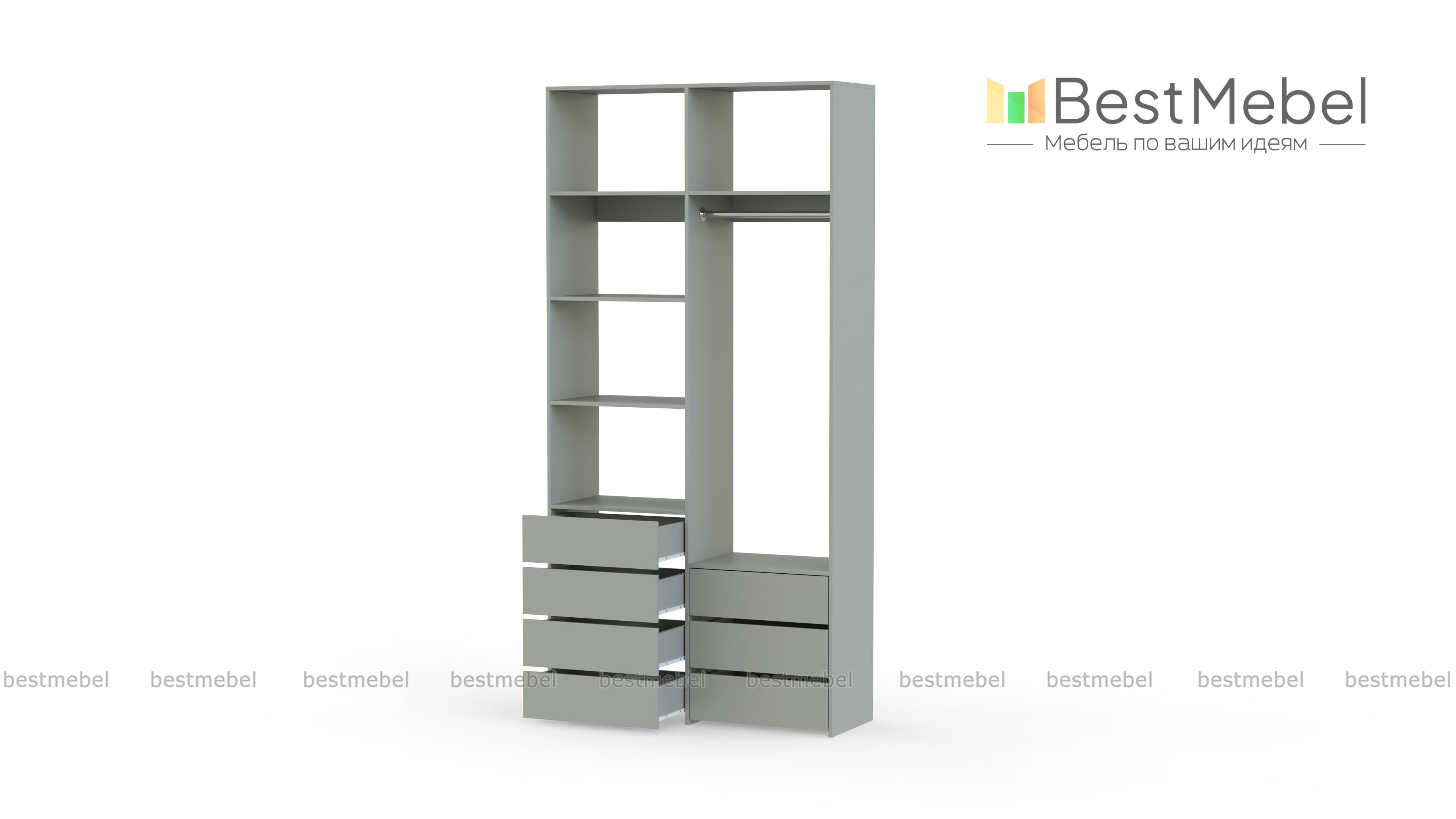 Стеллаж для одежды Мирта 41 BMS позволит вам зонировать пространство для хранения. Компактная двухсекционная конструкция разделена на отсек для вешалок, бельевые полки и два ряда выдвижных ящиков — под аксессуары, трикотаж и другие мелкие вещи. Для простого функционального дизайна стеллажа оптимально подходит светлый базовый оттенок. Купить стеллаж для одежды Мирта 41 BMS вы всегда сможете на сайте нашего интернет-магазина, по желанию изменив цвет и размеры.