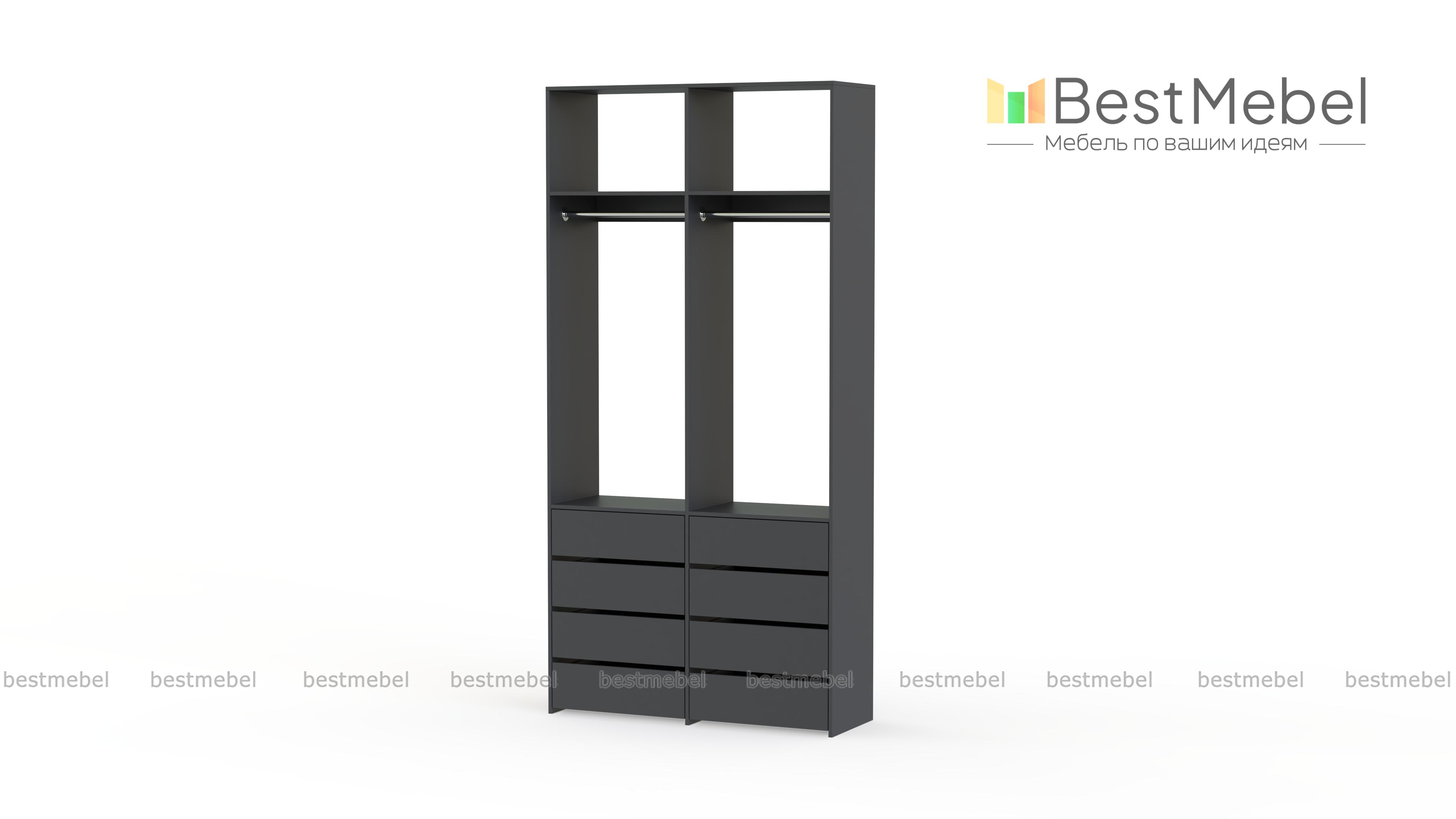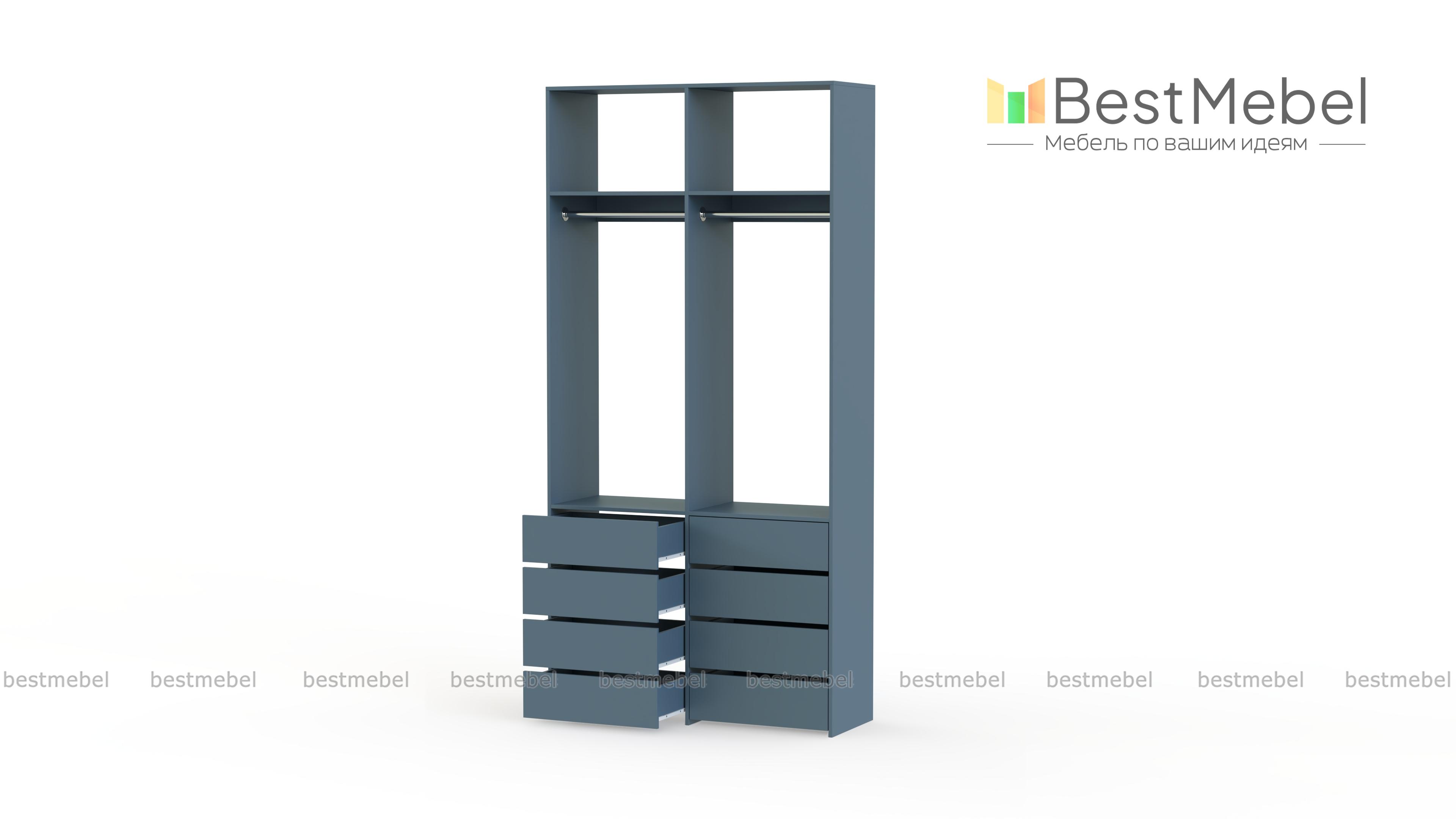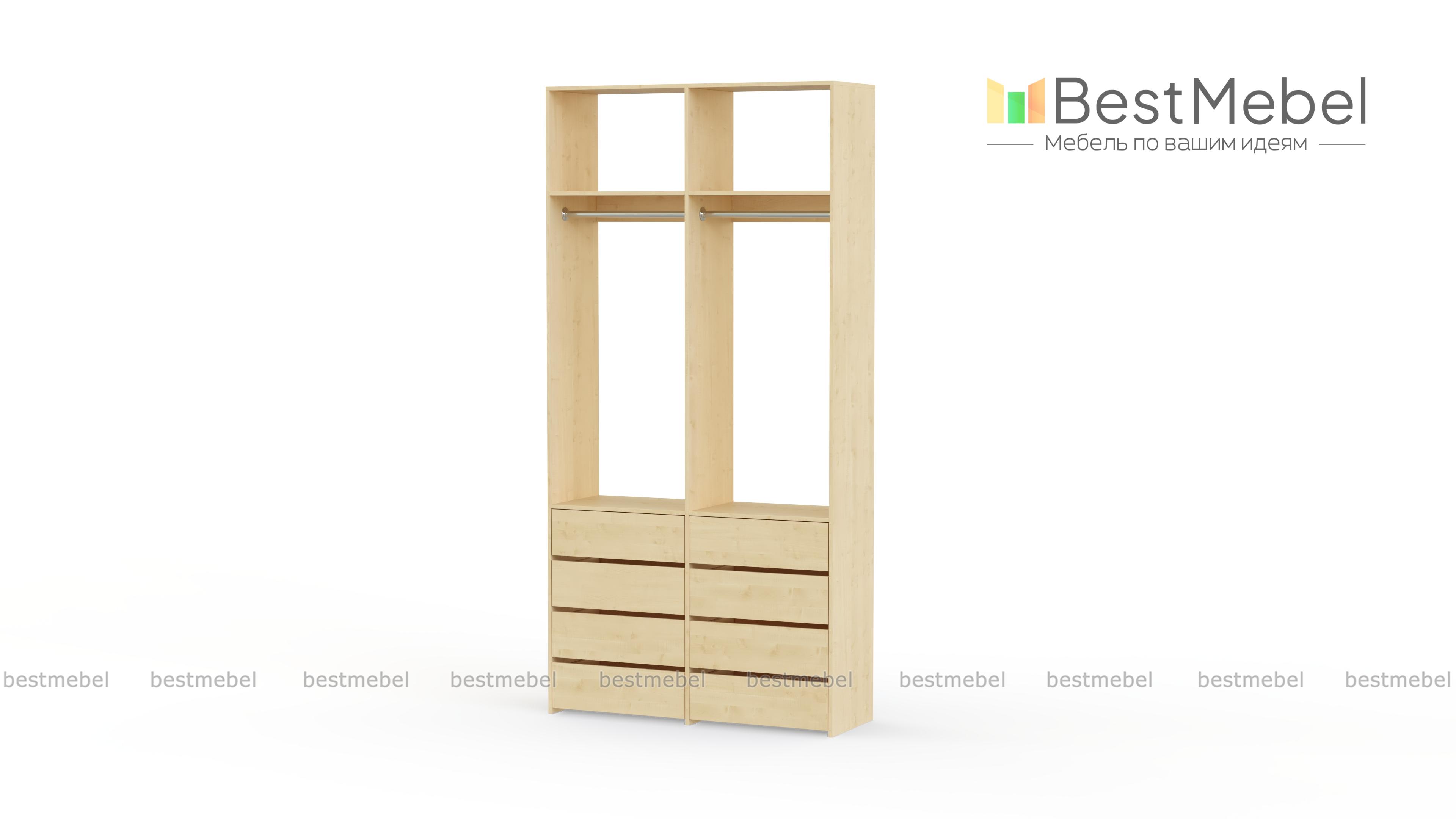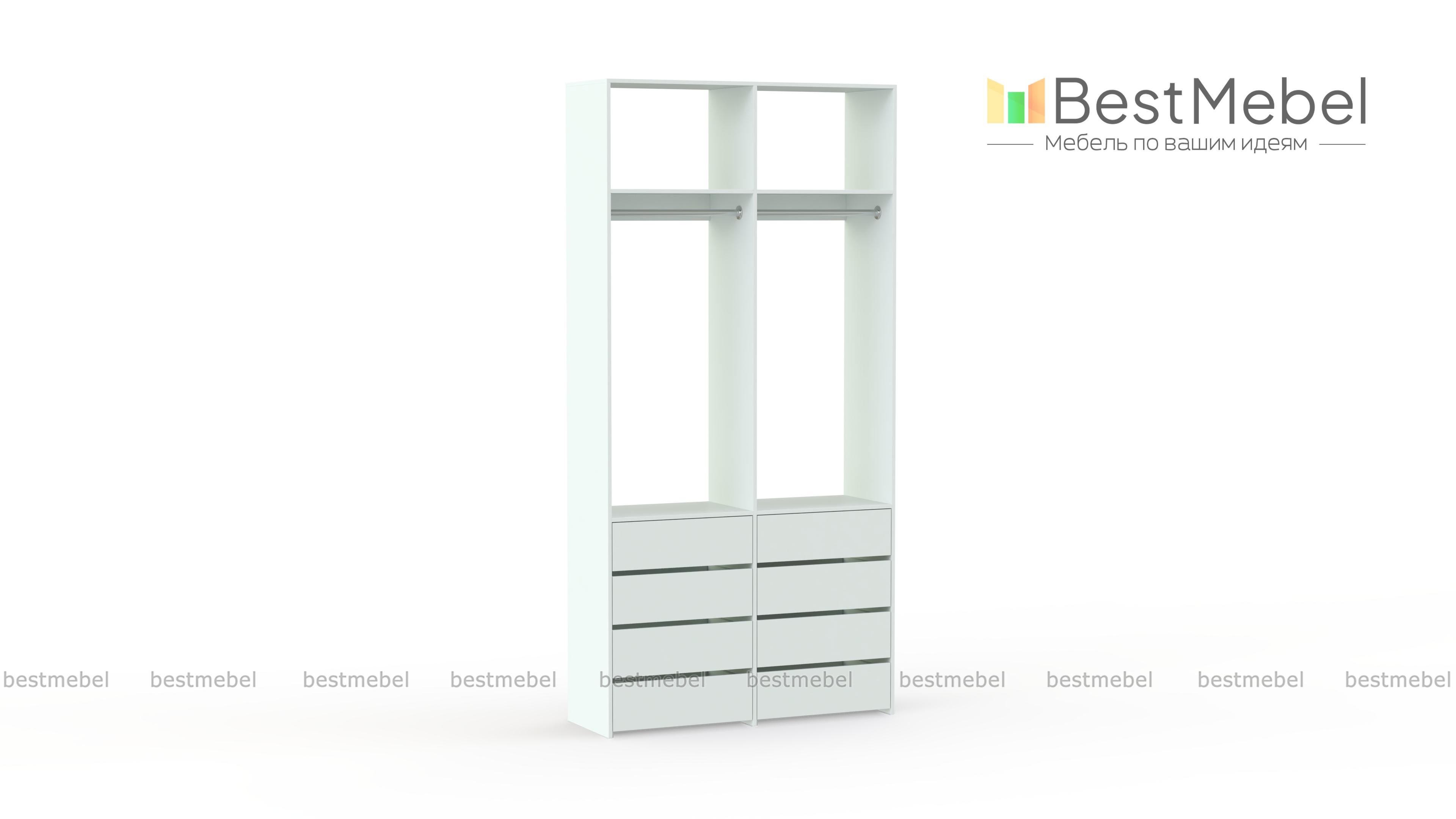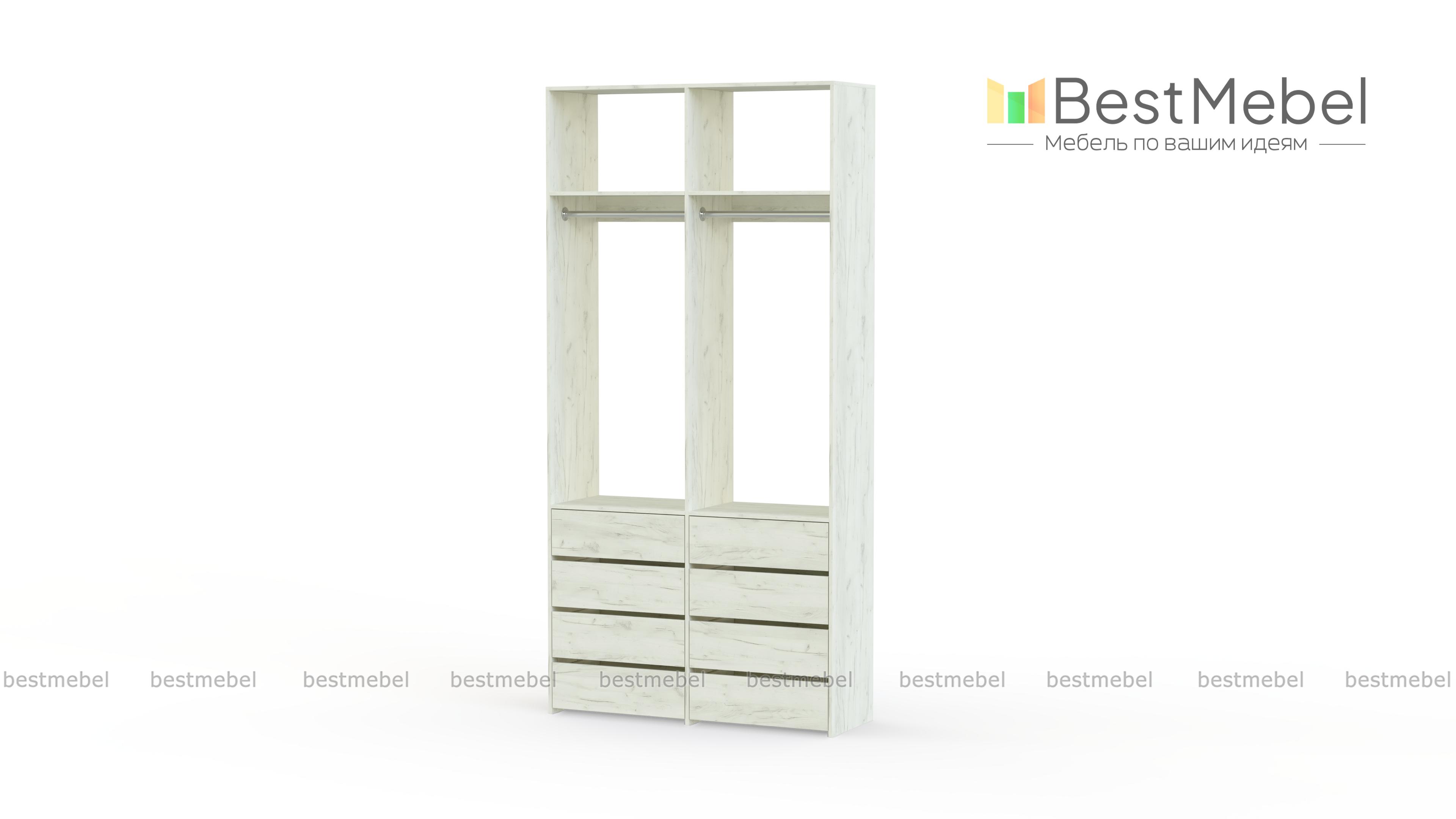 Стеллаж для одежды Мирта 44 BMS — это готовое решение в вашу гардеробную или прихожую. Продуманной системой хранения с двумя штангами, верхними полками и двумя рядами бельевых ящиков удобно пользоваться, не тратя время на поиски нужных вещей. Ламинированное покрытие эстетично выглядит, отличается прочностью и долговечностью. Купить стеллаж для одежды Мирта 44 BMS вы сможете на сайте нашего интернет-магазина с изготовлением по индивидуальным размерам.