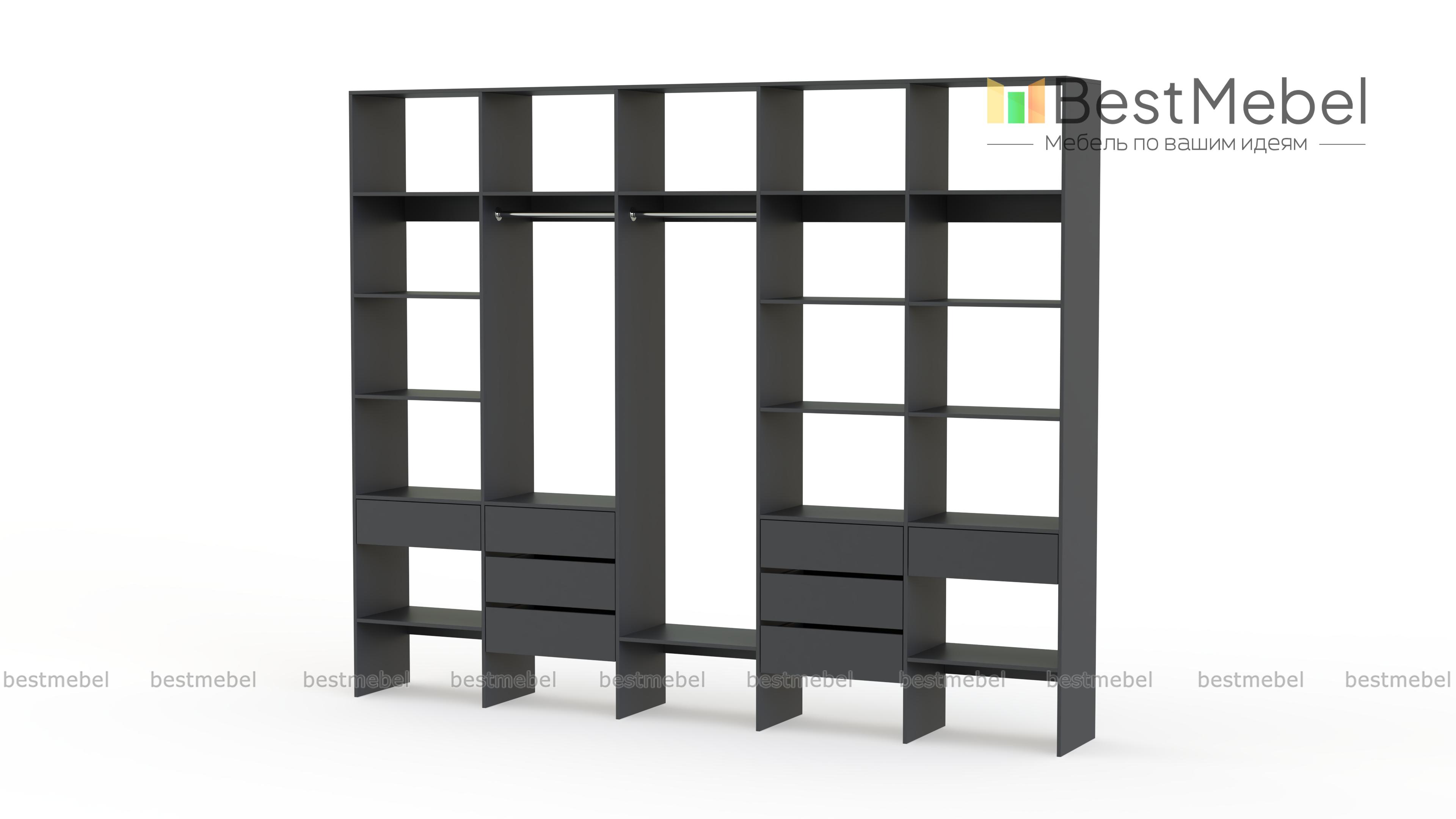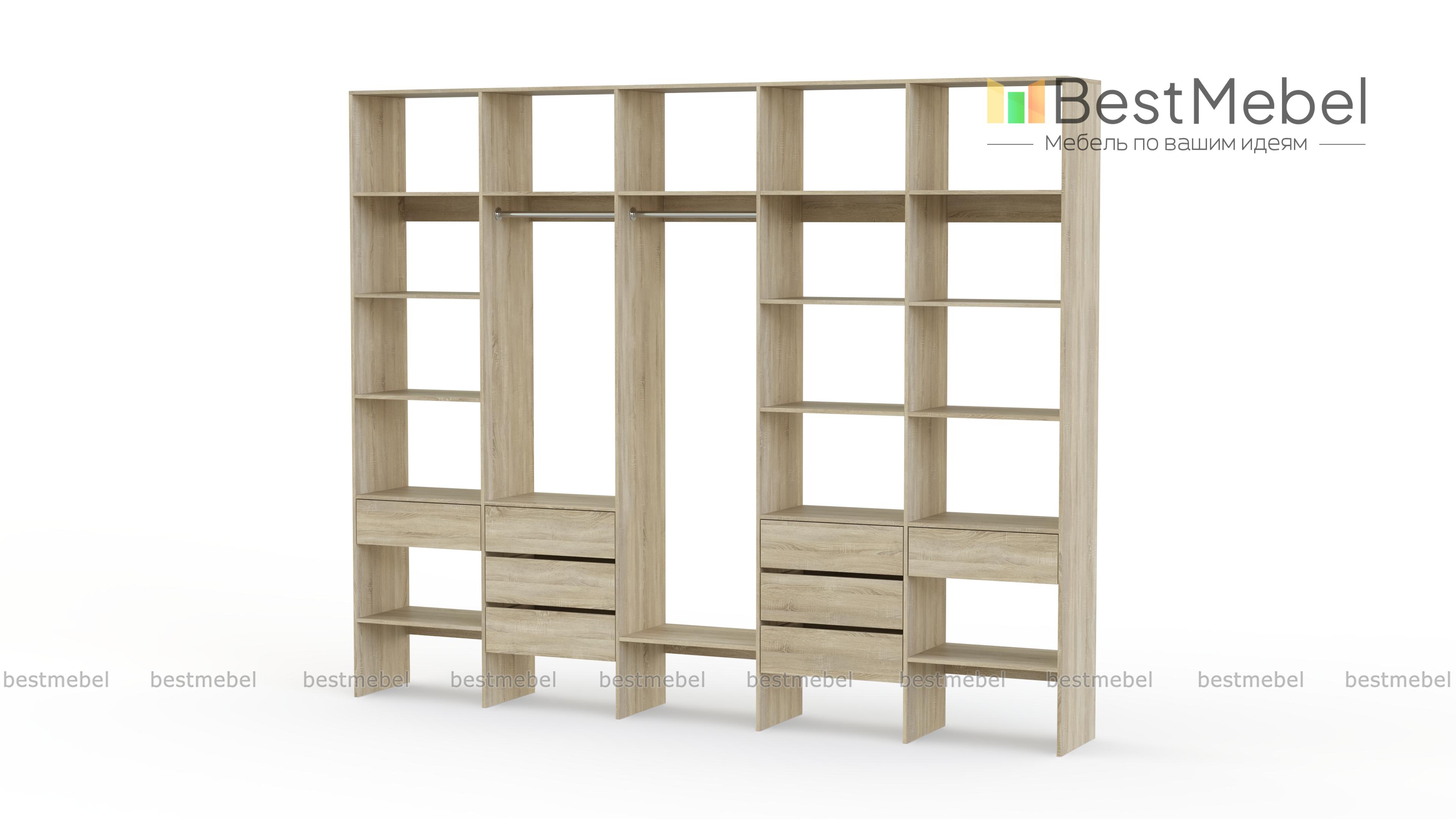 Стеллаж для одежды Мирта 72 BMS поможет вам обустроить зону для хранения вещей. Пять секций стеллажа оборудованы полками, двумя штангами и комбинацией из восьми выдвижных ящиков, позволяя выделить зоны для разных типов одежды, обуви и аксессуаров. Ламинированная ДСП в сочетании с качественной фурнитурой создает долговечную и эстетичную конструкцию. Купить стеллаж для одежды Мирта 72 BMS, подобрав оптимальные размеры и оттенок для вашего интерьера, приглашаем в наш интернет-магазин.