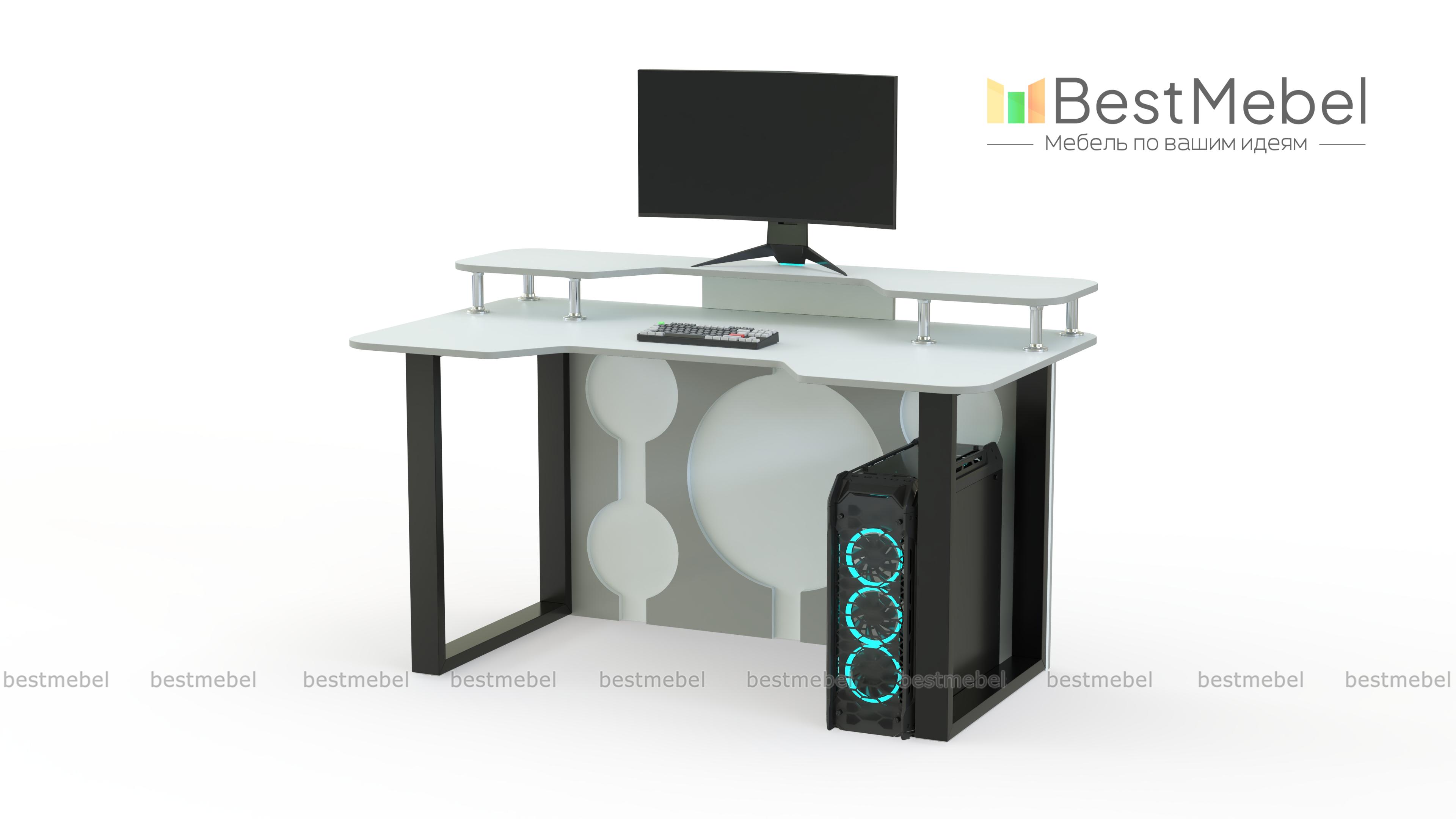 Геймерский стол Брук тип 9 BMS с рамочными опорами и декоративными вырезами задней стенки идеально вписывается в интерьеры стиля хай-тек или индастриал. Компактный, легкий и устойчивый, стол оборудован просторной столешницей с эргономичным вырезом. Разместить на удобной высоте монитор и современную периферию позволит надстройка на хромированных опорах. Купить геймерский стол Брук тип 9 BMS вы сможете в нашем интернет-магазине с подбором цвета по каталогу.