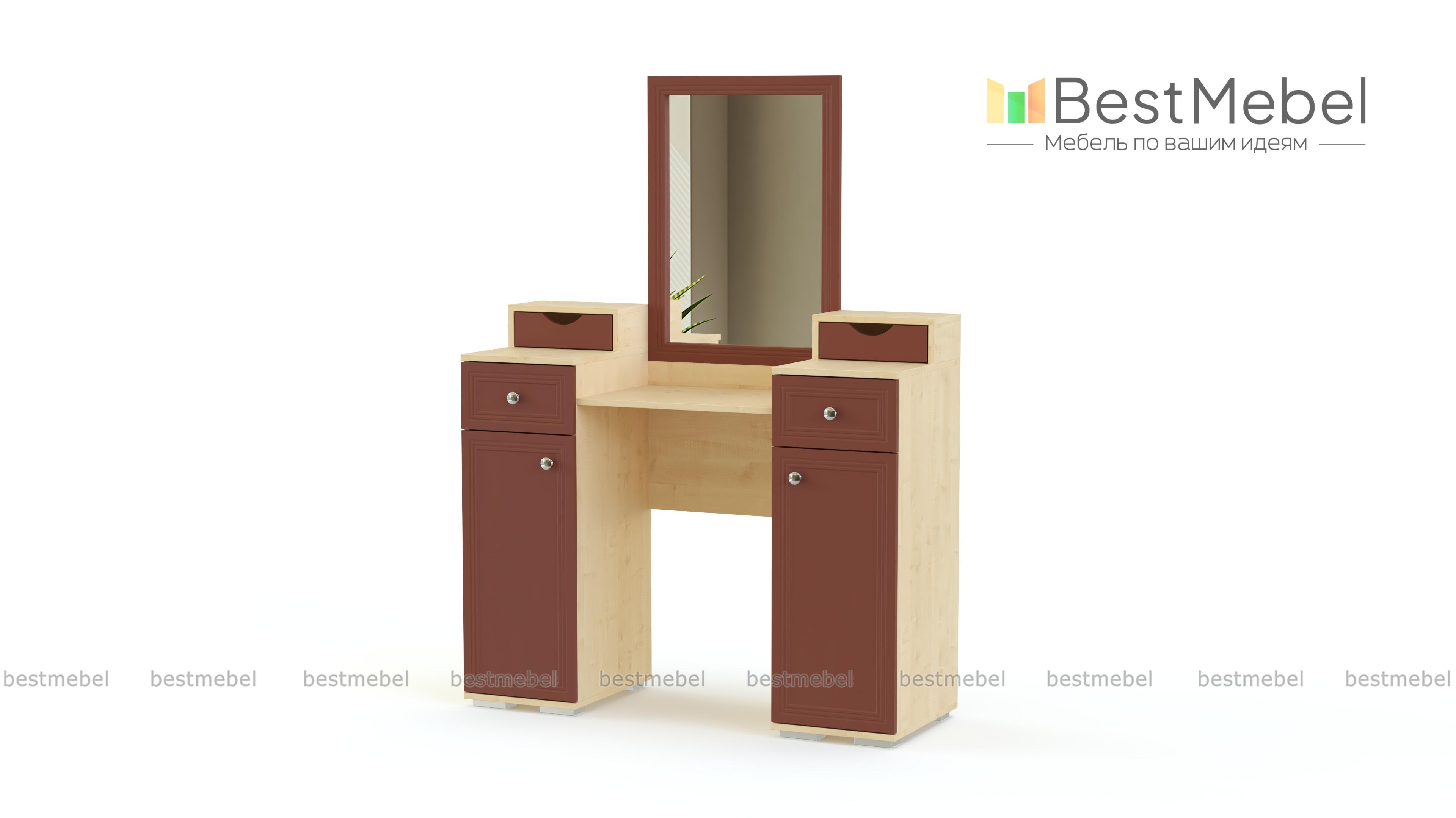 Туалетный стол Карина 1 BMS украсит спальный интерьер и поможет разместить под рукой все необходимые для ухода за собой мелочи. Двухтумбовая модель с большим зеркалом оборудована выдвижными ящиками и распашными отделениями с полками, а также ящичками для косметики и украшений. Выполненный в натуральных светлых тонах и декорированный фрезеровкой, столик гармонично дополнит другие предметы серии. Купить туалетный стол Карина 1 BMS для комфортного ухода за собой вы сможете в нашем интернет-магазине.