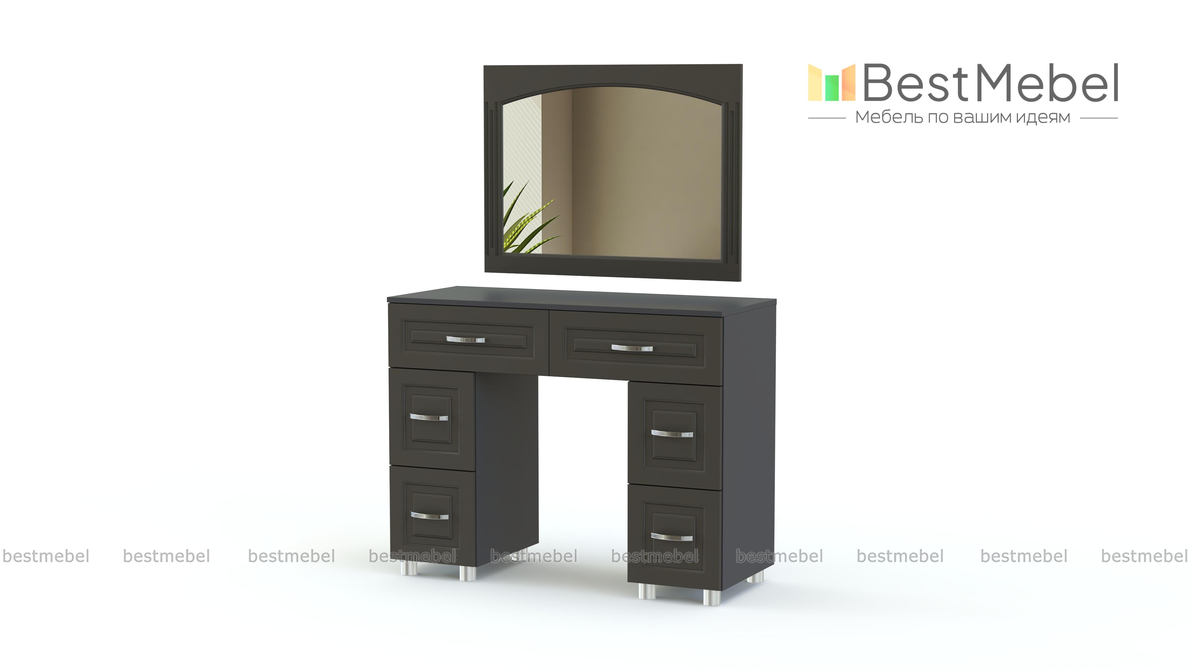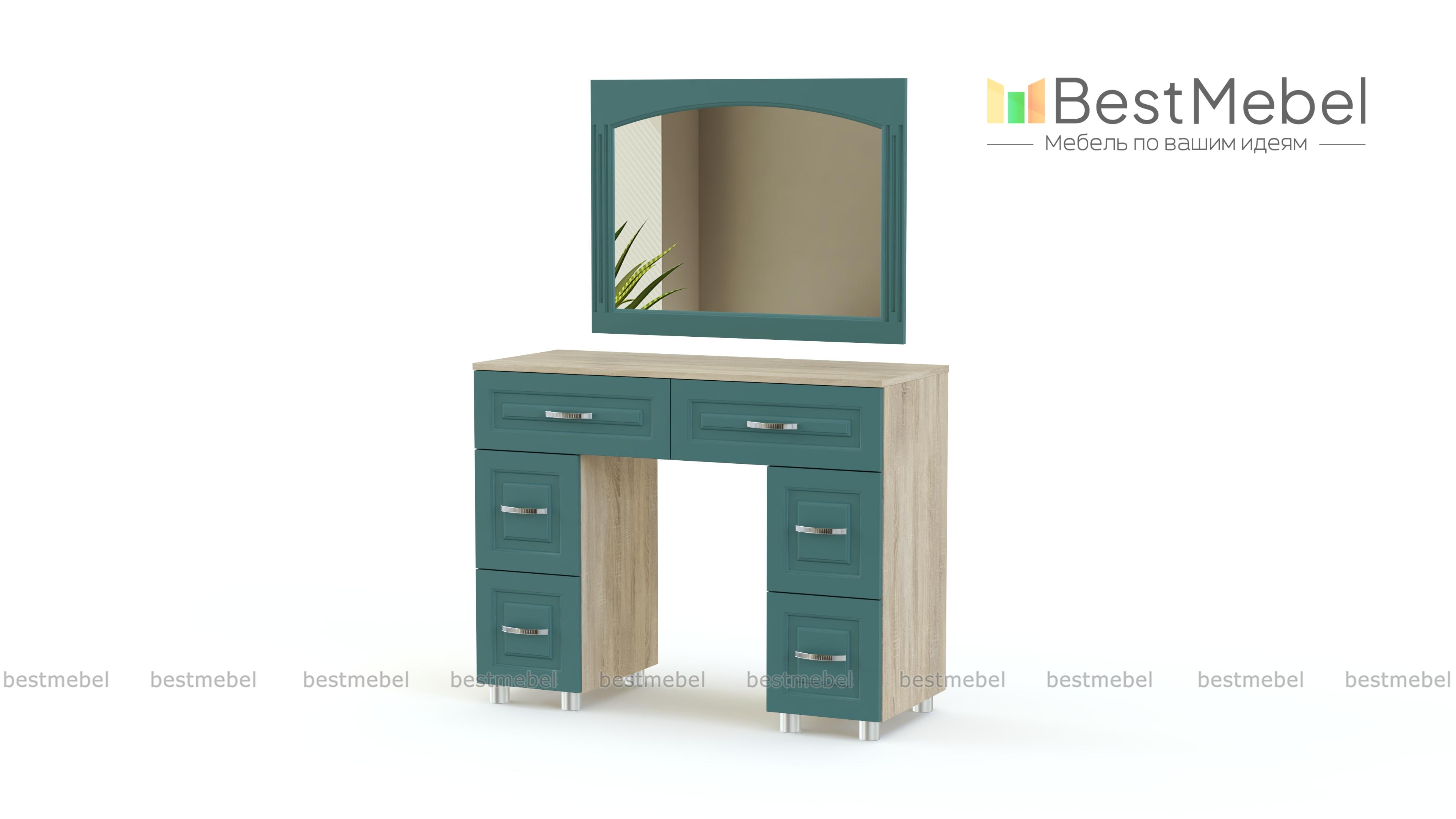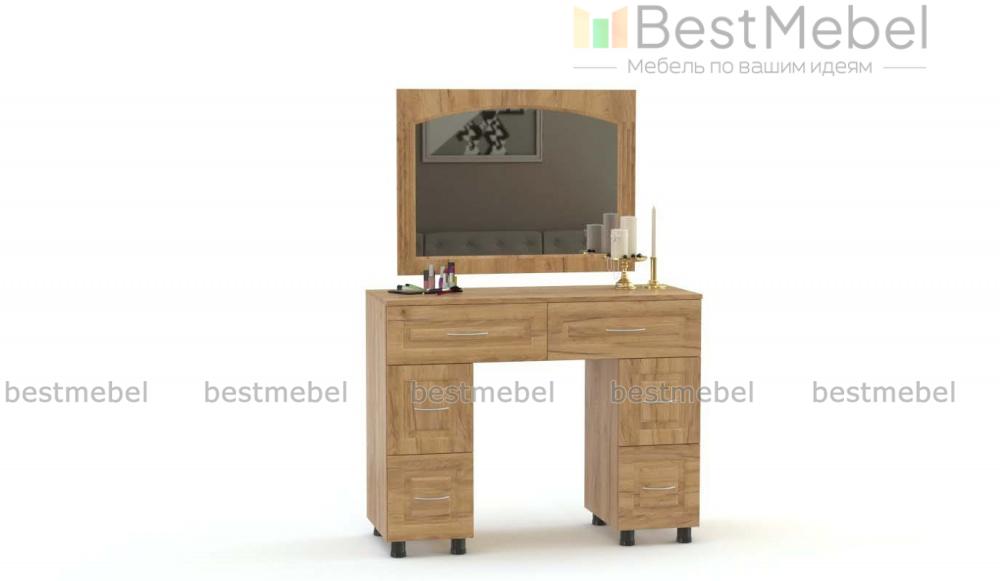 Туалетный стол Элизабет 3 BMS поможет вам разместить под рукой все необходимые уходовые средства и аксессуары. Двухтумбовая модель оборудована широкой столешницей, двумя большими и четырьмя малыми выдвижными ящиками, а дополняет композицию навесное зеркало в раме. Столик выполнен в теплых терракотовых тонах и декорирован по фасаду рамочной фрезеровкой. Купить туалетный стол Элизабет 3 BMS вы сможете на сайте нашего интернет-магазина.