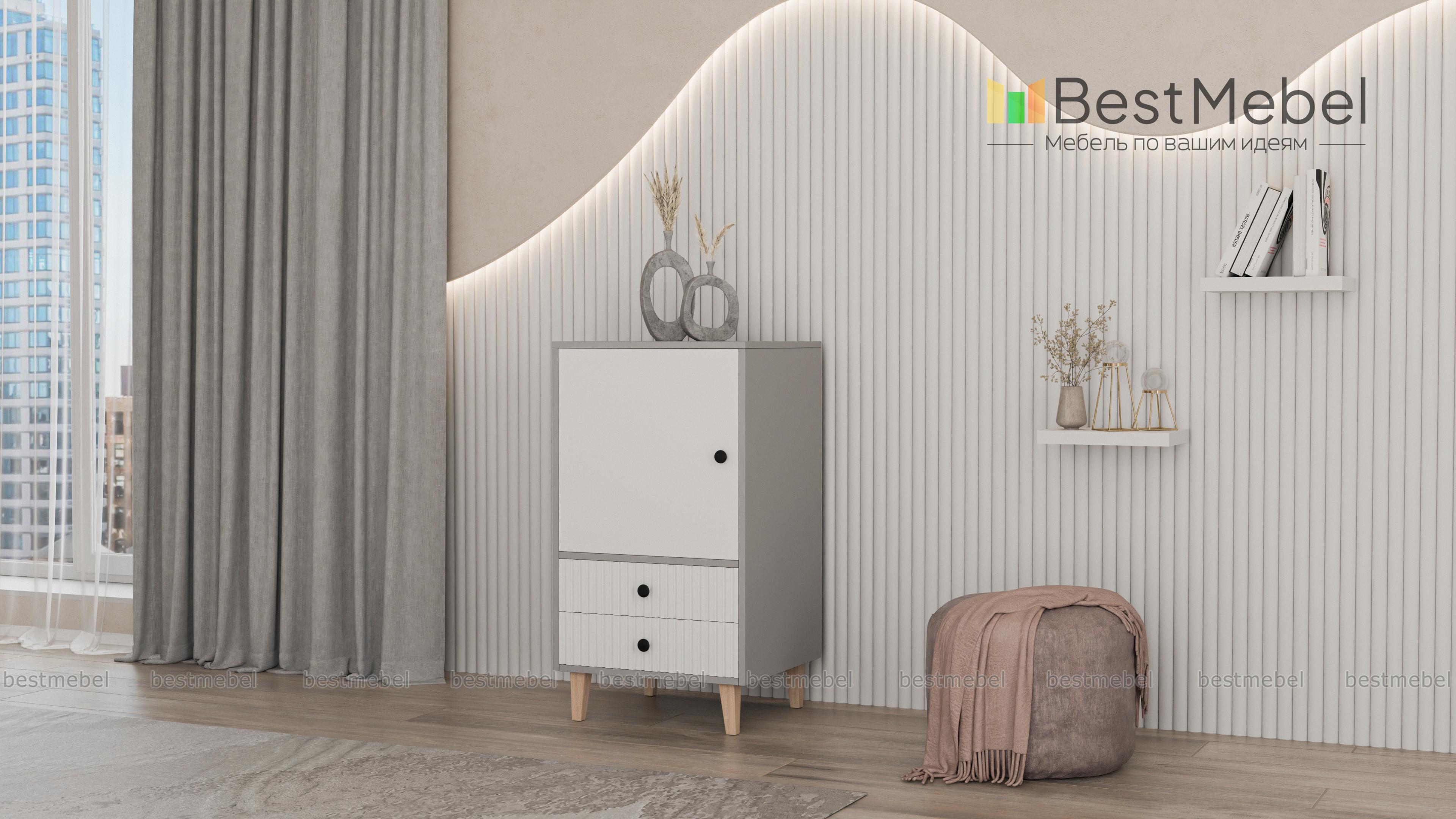 Тумба Брукс 2 BMS — не только практичное, но и стильное решение для хранения мелочей в небольшой комнате. Узкая тумба с высокими устойчивыми ножками и рельефной отделкой фасада выполнена в актуальной цветовой гамме. Бережно разложить вещи вам помогут закрытое распашное отделение и два выдвижных ящика снизу, оснащенные удобными круглыми ручками. Купить тумбу Брукс 2 BMS в подходящем именно вам размере и цвете можно недорого на сайте нашего интернет-магазина.