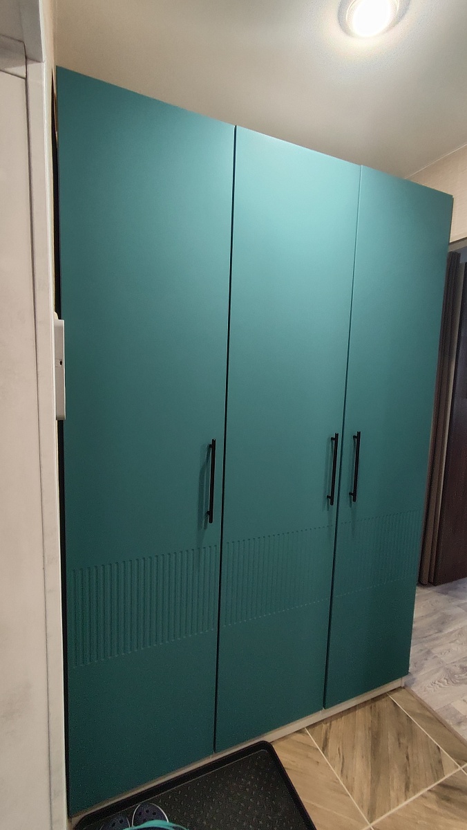 Шкаф распашной Остин Лайт 3 BMS (1400х2600х500). Прекрасный шкаф, хорошее качество исполнения. Прихожую обставила всю из Бестмебель (интересовал именно функционал: чтобы было куда сложить шапки, шарфы(ящики комода), повесить одежду (шкаф), бросить бумаги и сумочку по приходу (консоль)).Был брак на средней дверке на самом видном месте на уровне глаз, попросила заменить-заменили в кротчайшие сроки+доложили петли на две двери(12штук)- изначально их положить забыли, выяснилось в ппоцессе сборки только.Сама заменила штангу (в цвет, с покрытием), "родная" не нравилась-очень уж сильно об нее гремят вешалки.Заказом довольна, рекомендую👍. Огрехи есть, но если не на видном месте-закрываем глазки😉, цена устраивает.